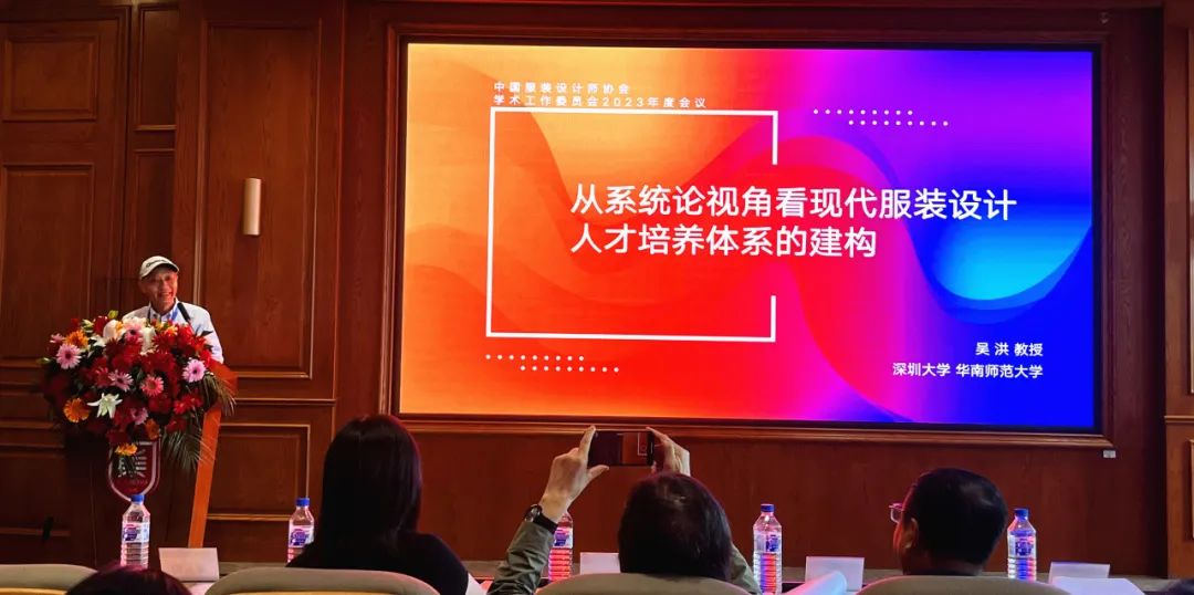 在主题报告环节,九位专家委员围绕新文科背景下的创新人才培养范式发表了精彩的演讲。华南师范大学创意设计学院、深圳大学艺术学部博士生导师吴洪教授指出,从系统论视角建构中国高校服装设计学科体系,有助于全面和科学地理解服装设计等学科的内在结构、演化规律和发展方向。