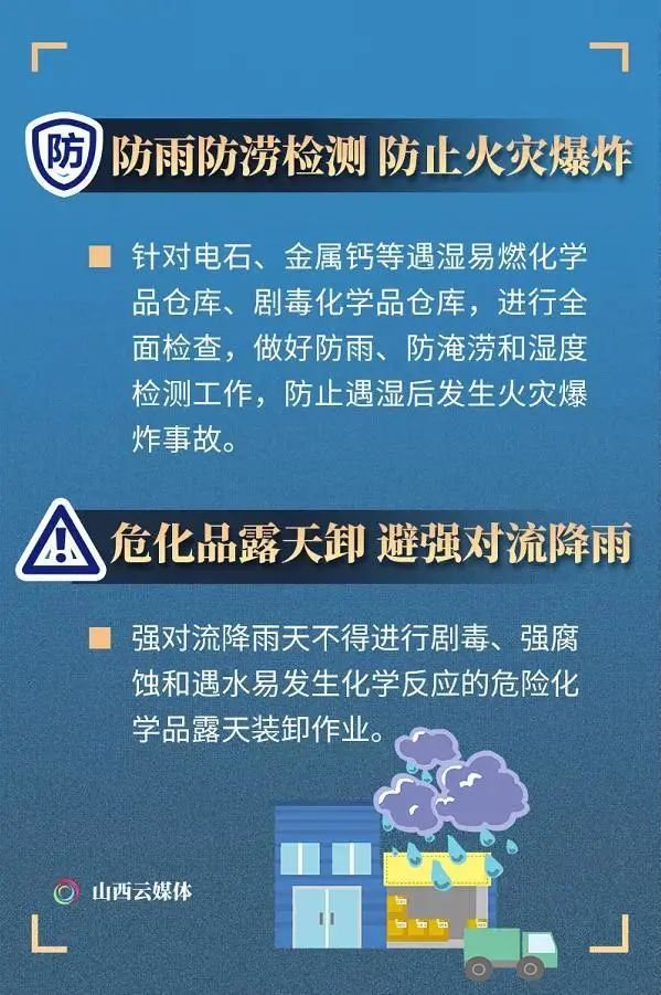 要合理安排生产计划,增加周转频次,将储存量控制在最小范围内;及时关注化学品包装是否有膨胀、泄漏等情况,妥善采取避光、遮阳、降温、防积水等措施;如遇暴雨天气,地面积水严重或汛情严重时,要及时向主要负责人报告,科学制定转移措施。
