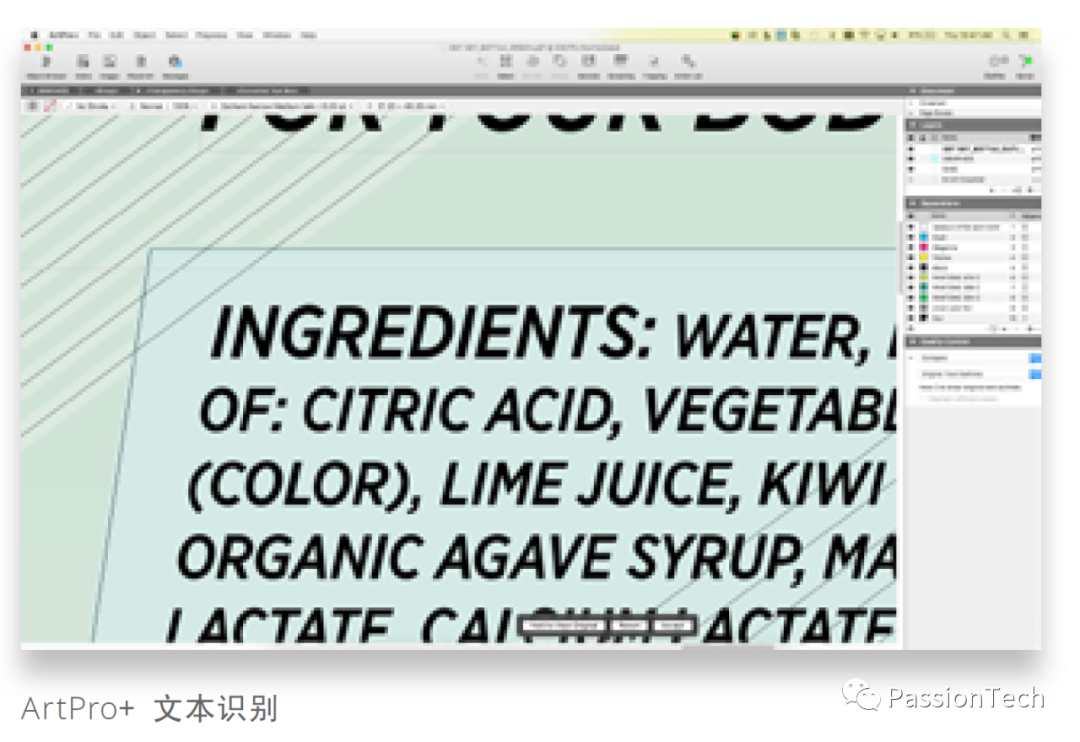 ArtPro+可识别PDF中的文本对象,并将其重新组合到有意义的文本框中。但更重要的是,新的字符和字体识别功能可将已转曲文字转换为可编辑的文本。对已经转曲的文字做文本的更改,通常比较费时,如今可以像处理活动文本一样的高效。