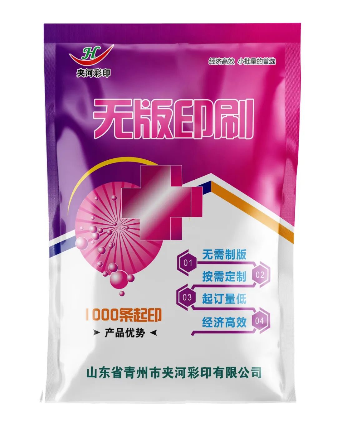 产品说明:具有良好的气密性和阻隔度高,透氧透湿度超低,方便携带,针对食品行业包装更换频次高,种类多,版费贵,起订量高等情况,特推出最新款无版印刷。起订量低、无需制版、经济高效、按需定制,1000条起印、三天出货。