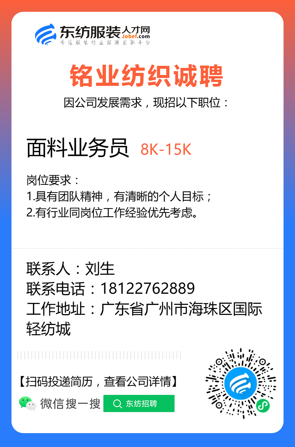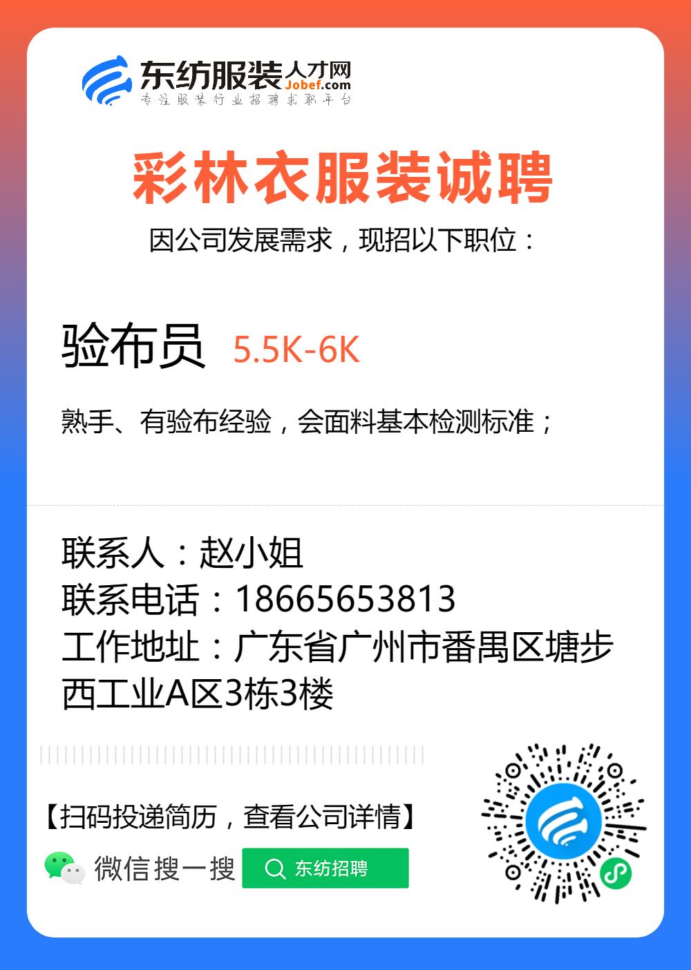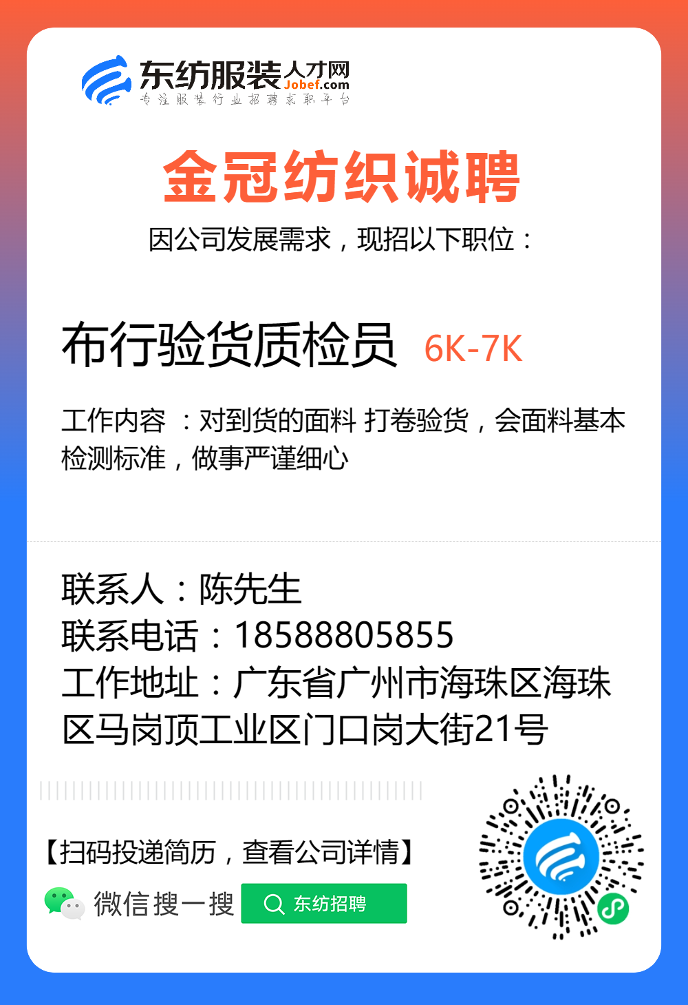 服装招聘·布行类丨8. 15 号,验布员、布行销售、质检员……