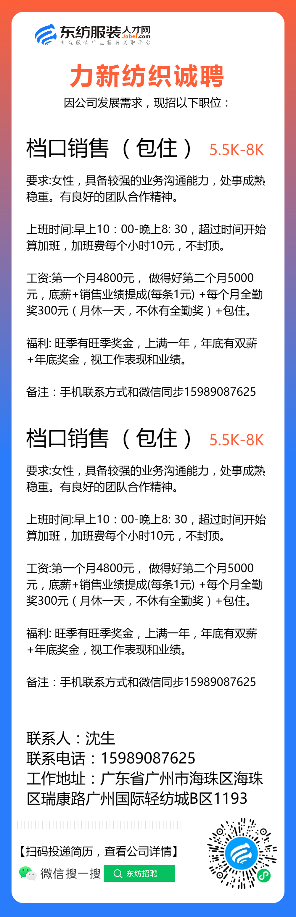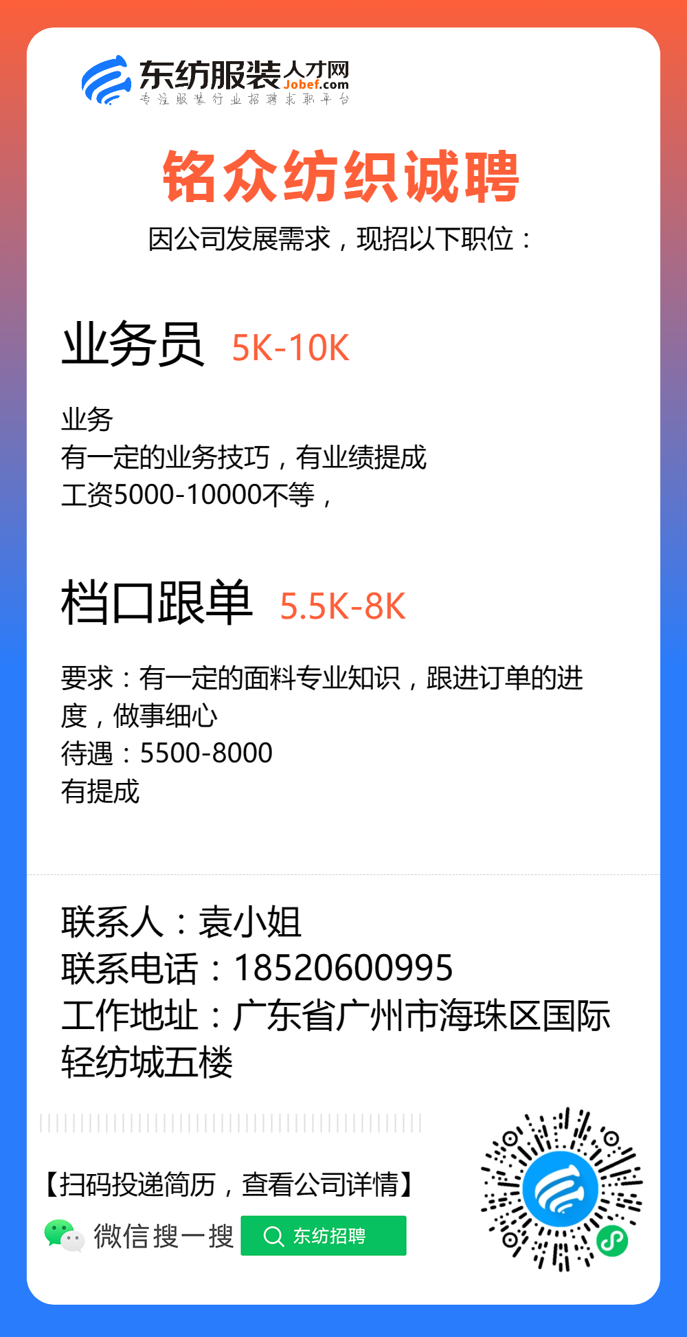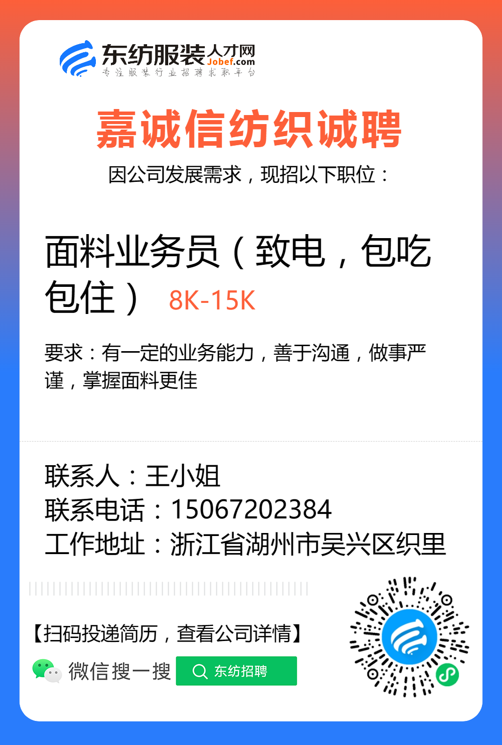 服装招聘·布行类丨8. 15 号,验布员、布行销售、质检员……