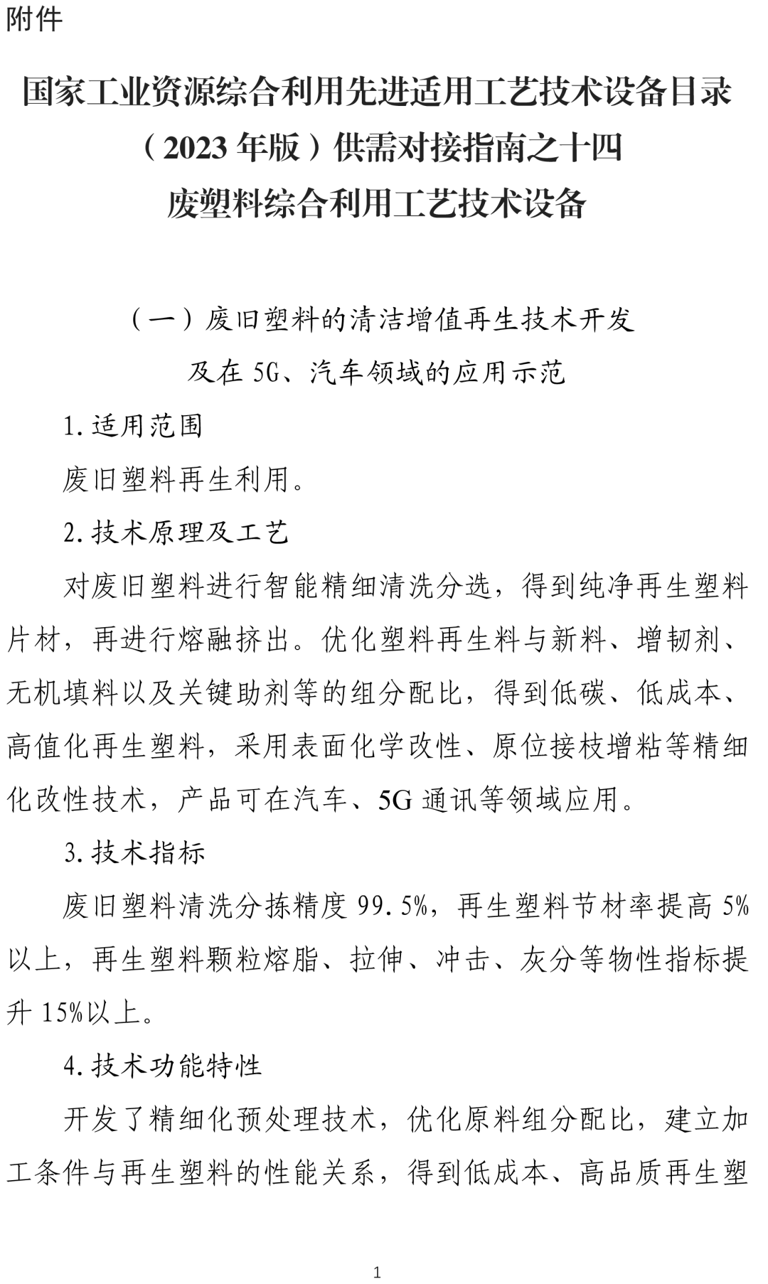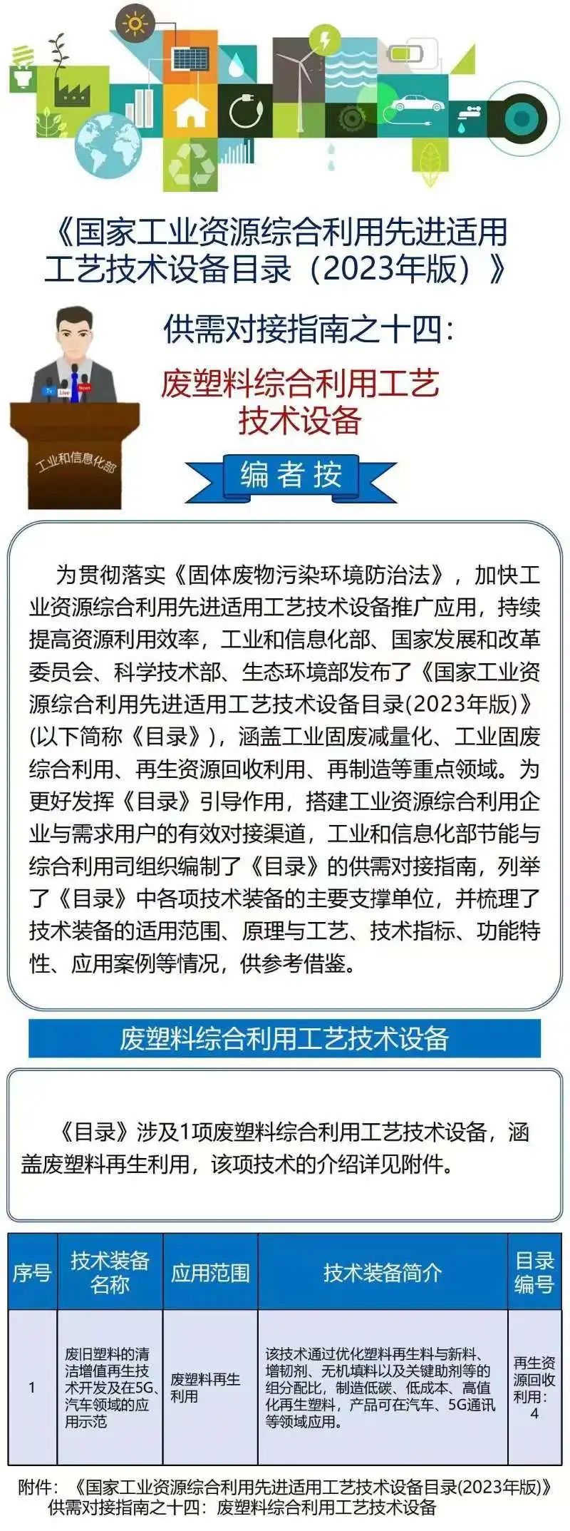 国家工业资源综合利用先进适用工艺技术设备目录(2023年版)供需对接指南之十四:废塑料综合利用工艺技术设备
