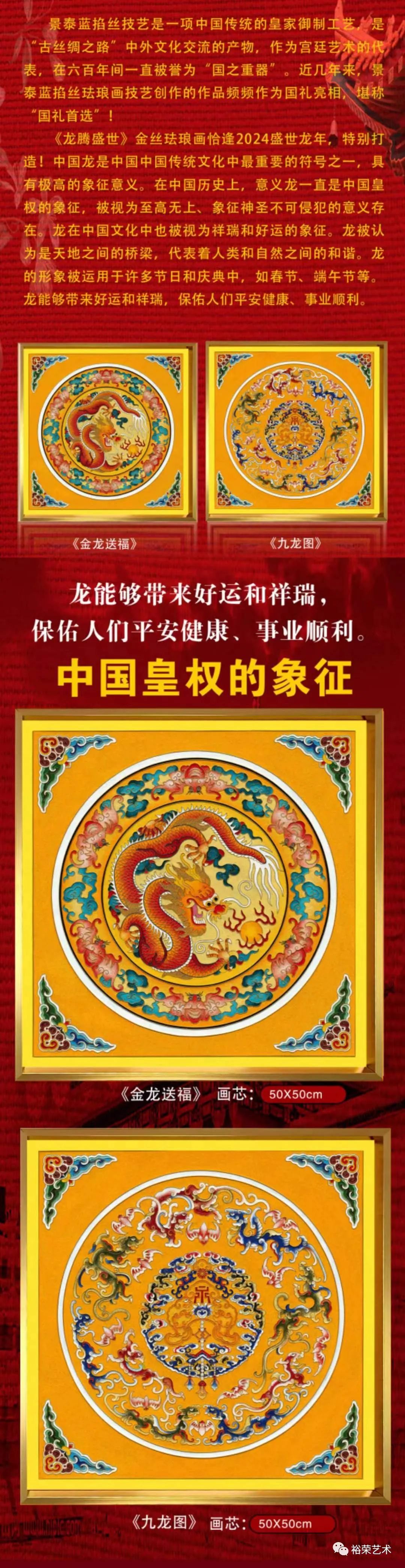 《龙腾盛世》采用了掐丝珐琅景泰蓝技术,制作过程复杂: