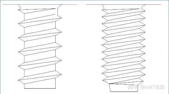 自攻螺纹:装配时先在装配物上钻孔,不需攻内牙,使用较大力矩装配。