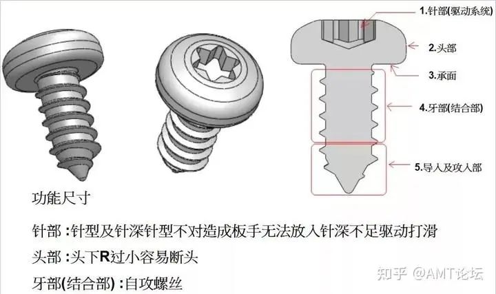 自钻螺纹:直接在装配物上使用,螺丝钻孔攻牙一次成型。