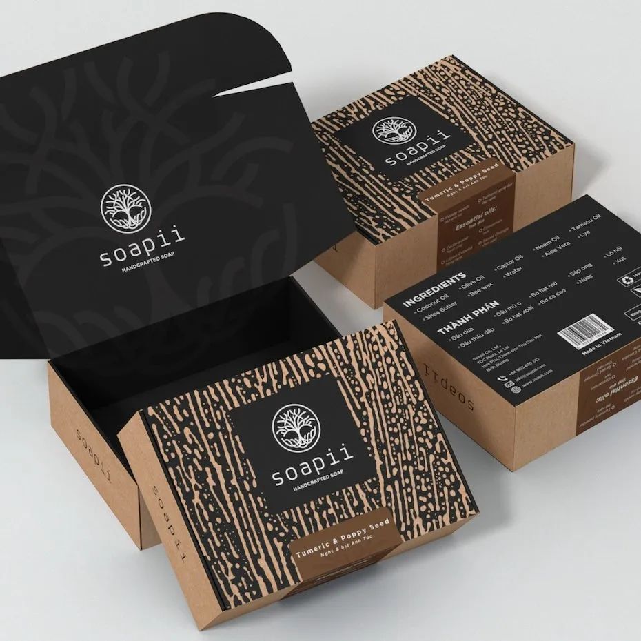 这种包装设计激发了买家的信任,并向他们保证,他们涂抹在身上的香皂是由健康的、通常是天然提取的成分制成的,不会引起刺激或影响他们的健康。