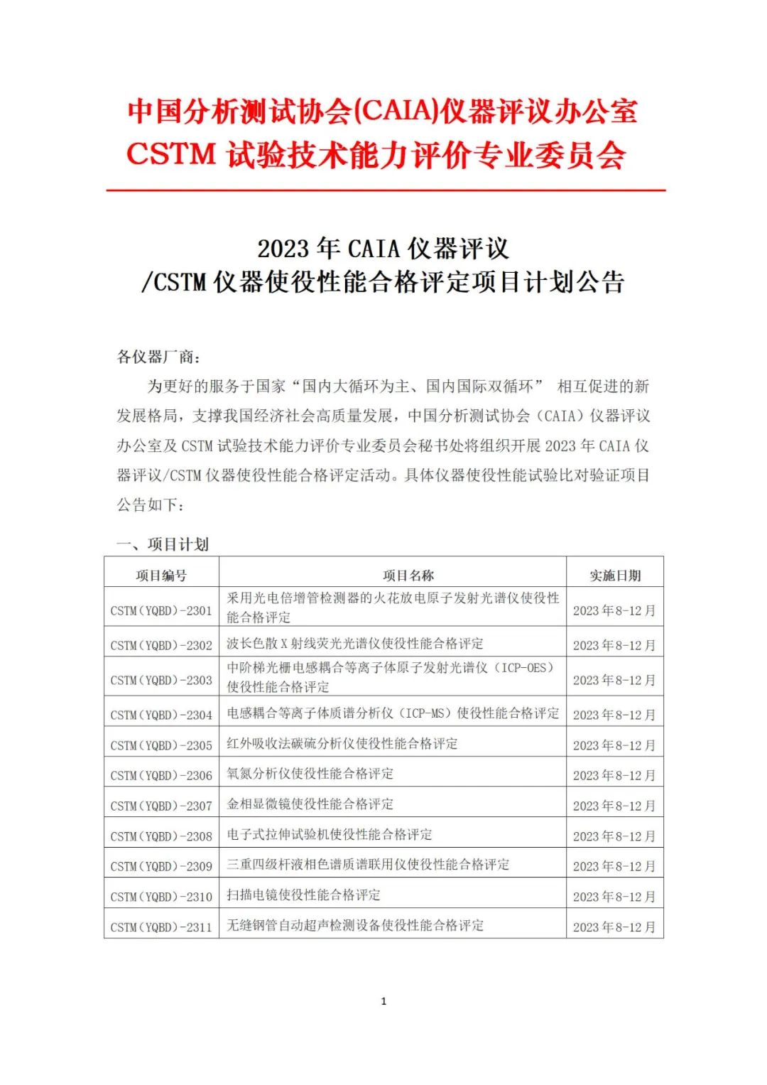 2023年CAIA仪器评议及CSTM仪器评议及使役性能合格评定项目计划公告.pdf