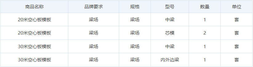成都普安建筑劳务有限公司采购一批空心板模板梁场使用