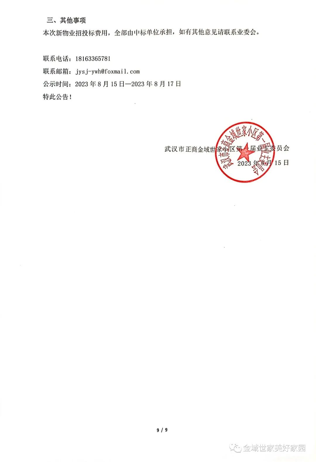 关于聘请湖北省成套招标股份有限公司进行新物业招标工作的公告