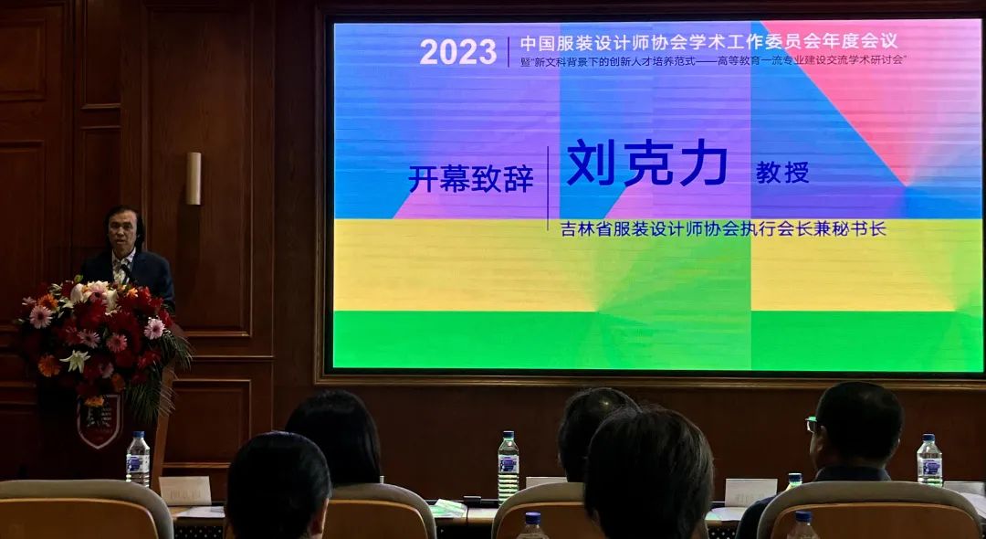 8月11日,中国服装设计师协会学术工作委员会2023年度会议暨“新文科背景下的创新人才培养范式——高等教育一流专业建设交流学术研讨会”在东北师范大学召开,会议由东北师范大学社会科学处、东北师范大学美术学院承办,来自国内50余所高校的近百名专家学者参加会议。东北师范大学党委常委、副校长薛利锋教授,中国服装设计师协会专职副主席朱少芳,吉林省服装设计师协会执行会长兼秘书长刘克力依次在开幕式上致辞。中国服装设计师协会执行主席杨健、中国服装设计师协会专职副主席兼秘书长黄萍、专职副主席谢方明、东北师范大学美术学院党委书记、博士生导师张群教授、东北师范大学美术学院副院长刘福副教授及中央美术学院设计学院博士生导师吕越教授、苏州大学艺术学院艺术研究院副院长、博士生导师李正教授等领导、专家参加了本次会议。 研讨会由湖北美术学院时尚艺术学院院长李海兵教授,东华大学服装与艺术设计学院副院长王朝晖教授主持。中国服装设计师协会学术工作委员会总干事李菲作2023学术委员会年度工作报告。