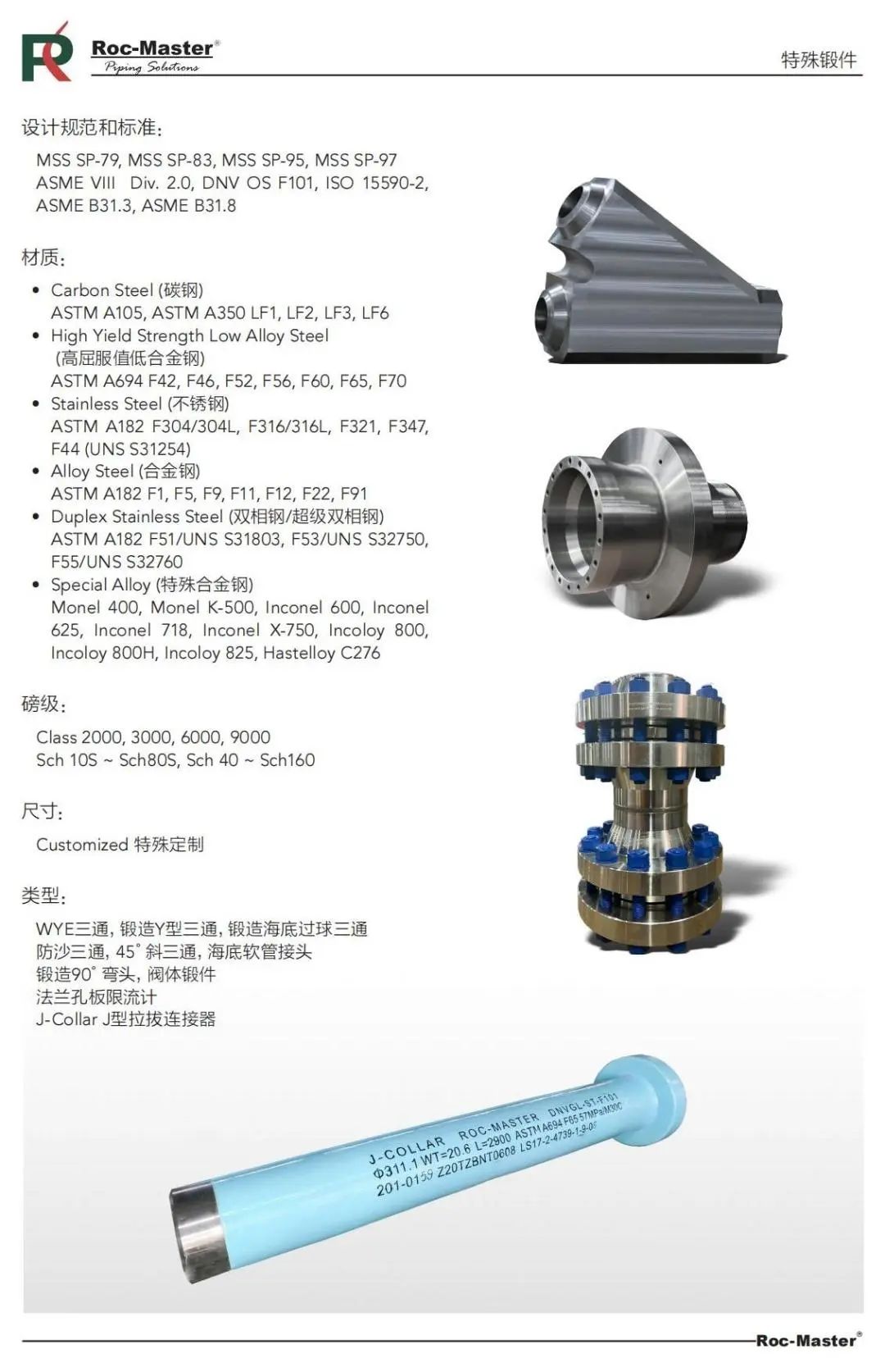 吉安锐访管道配件有限公司经过多年发展,现有100多名生产,技术,质量及管理人品,是一家集设计、制造、销售锻件、法兰的生产企业。我们的产品材料包括抗硫低碳钢、特种合金钢、不锈钢、超级双相钢、超级奥氏体、镍合金、铜合金以及航空用高温合金、钛合金、7075/5083铝合金等30余种材质,拥有3150吨快锻机组,2500吨电动螺旋压力机. 最大自由锻能力20吨,最大模锻能力120公斤,拥有大型3x6米龙门加工中心、3x6米数控镗床、2.5米立车、数控4轴立式加工中心,数控镗铣床、数控钻床等设备,热处理炉按照APL6A标准做9点炉温要求和检查,热处理行叉车将淬火入水过程控制在50秒内。年产特材锻件达500吨,不锈钢、碳钢、高屈服值钢锻件达15000吨。工厂常备碳钢原材料库存3000吨:不锈钢、双相钢、镍基合金、铜镍合金原材料库存500吨;常规碳钢及不锈钢法兰标准件毛坏、半成品400余吨库存,可为工程项目需求提供快速供货服务。