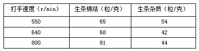 多仓混棉机产生棉结的数量,与该机的给棉打手、均棉打手及剥棉打手速度有关,一般在不堵车的情况下,各部位打手速度偏低掌握有利于降低棉结增长率。