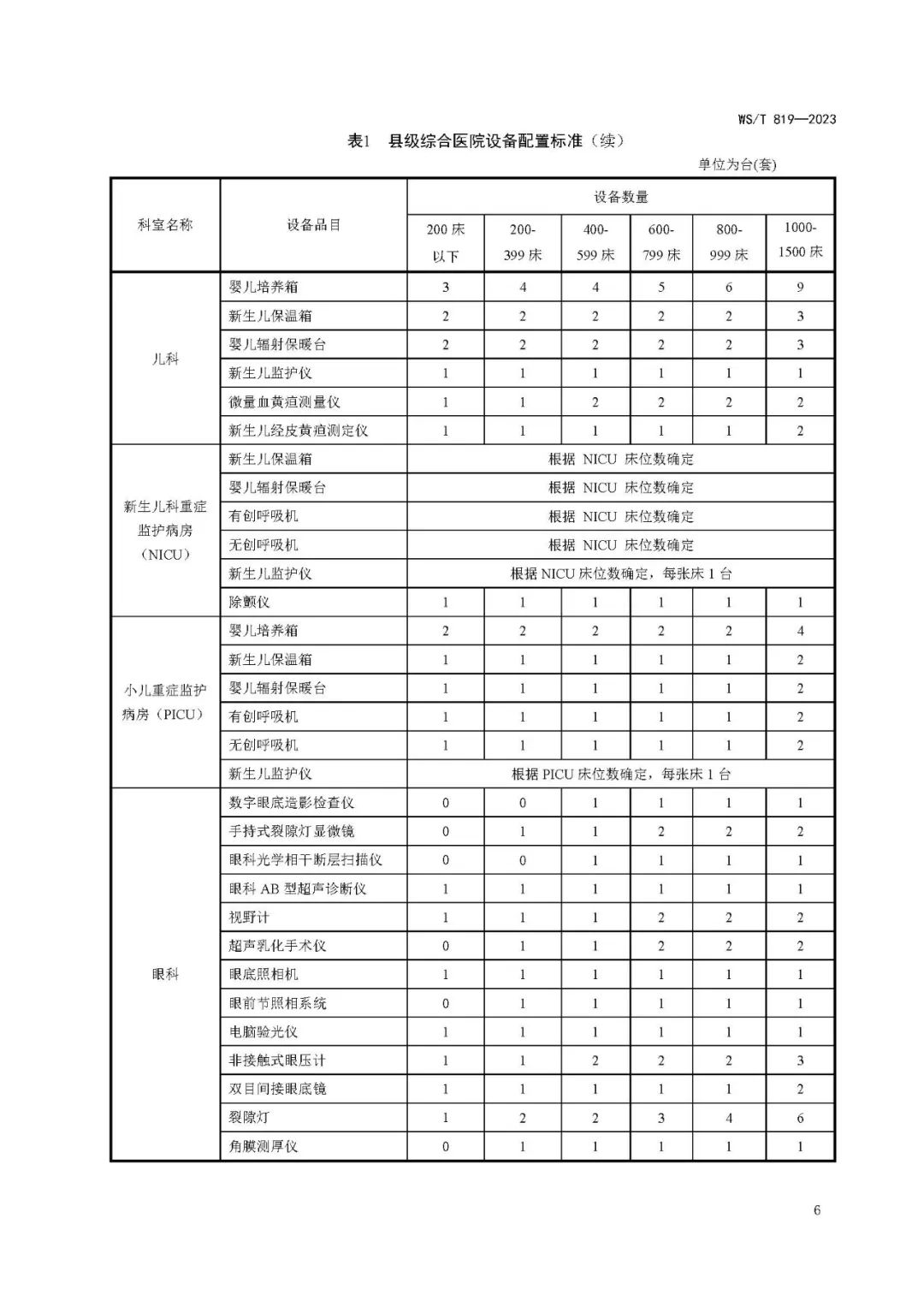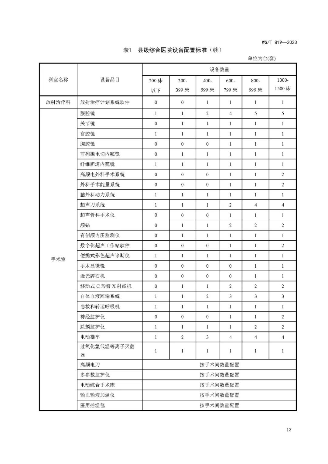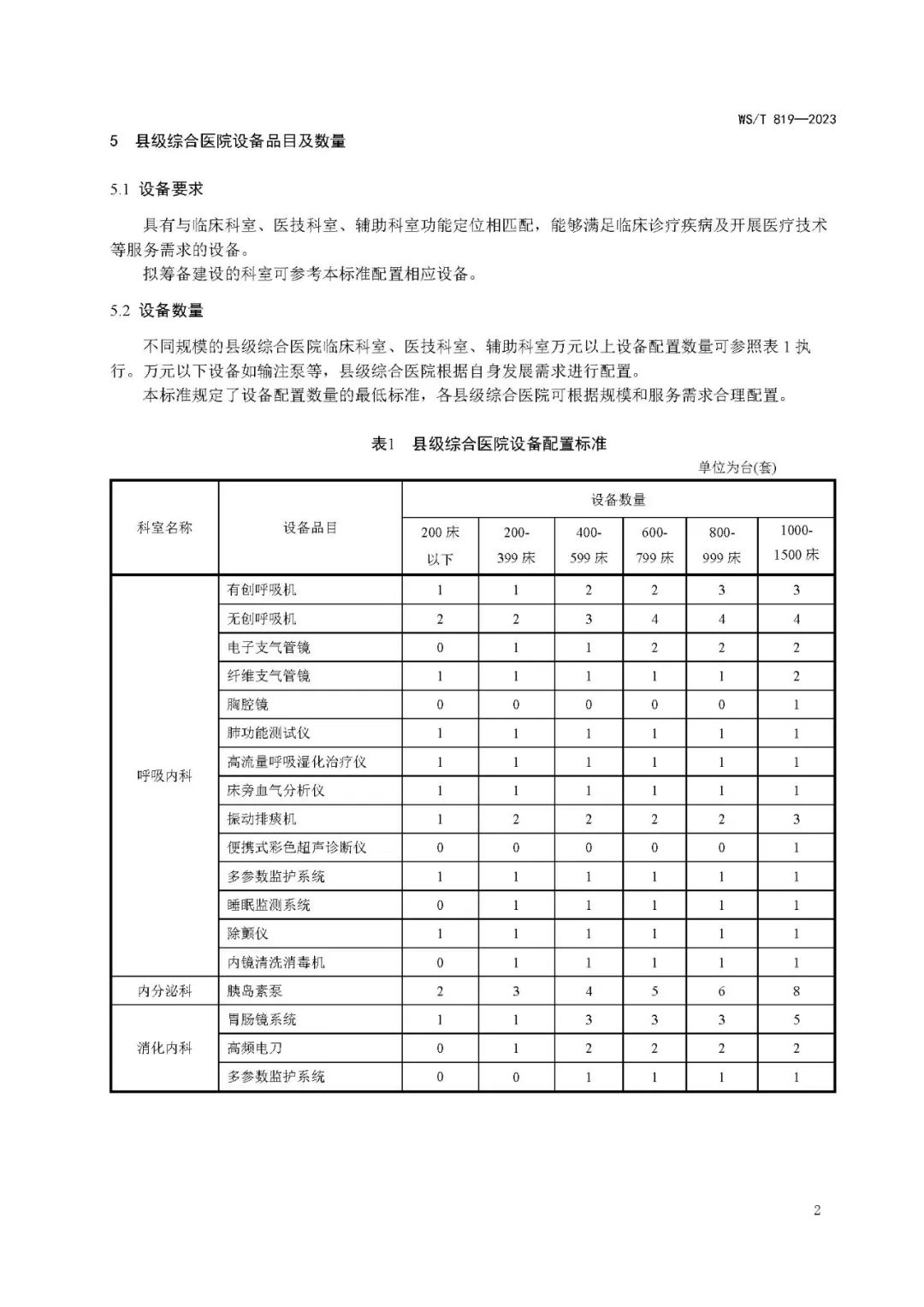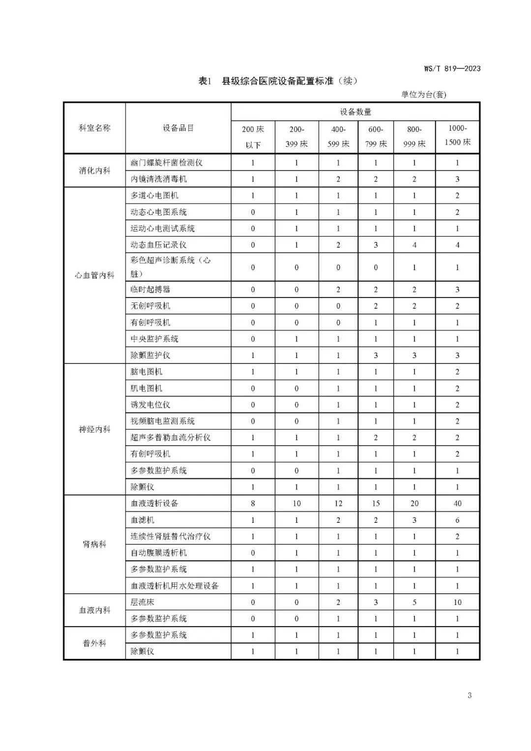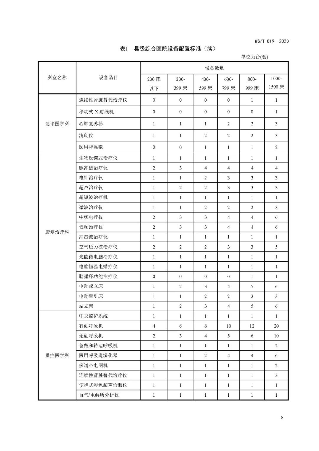 县级综合医院设备配置标准WS/T 819—2023