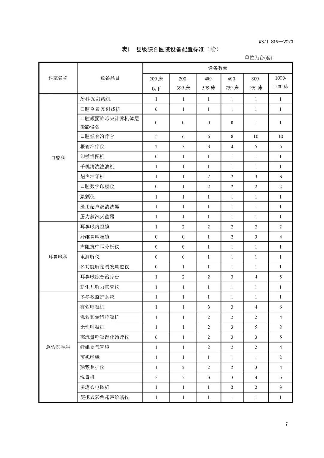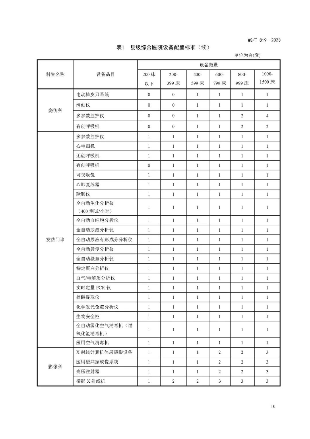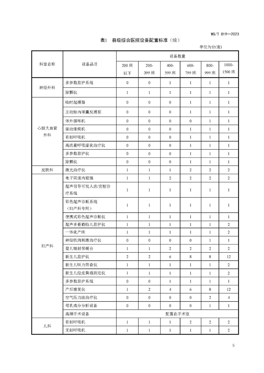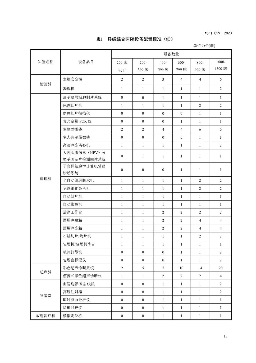 县级综合医院设备配置标准WS/T 819—2023