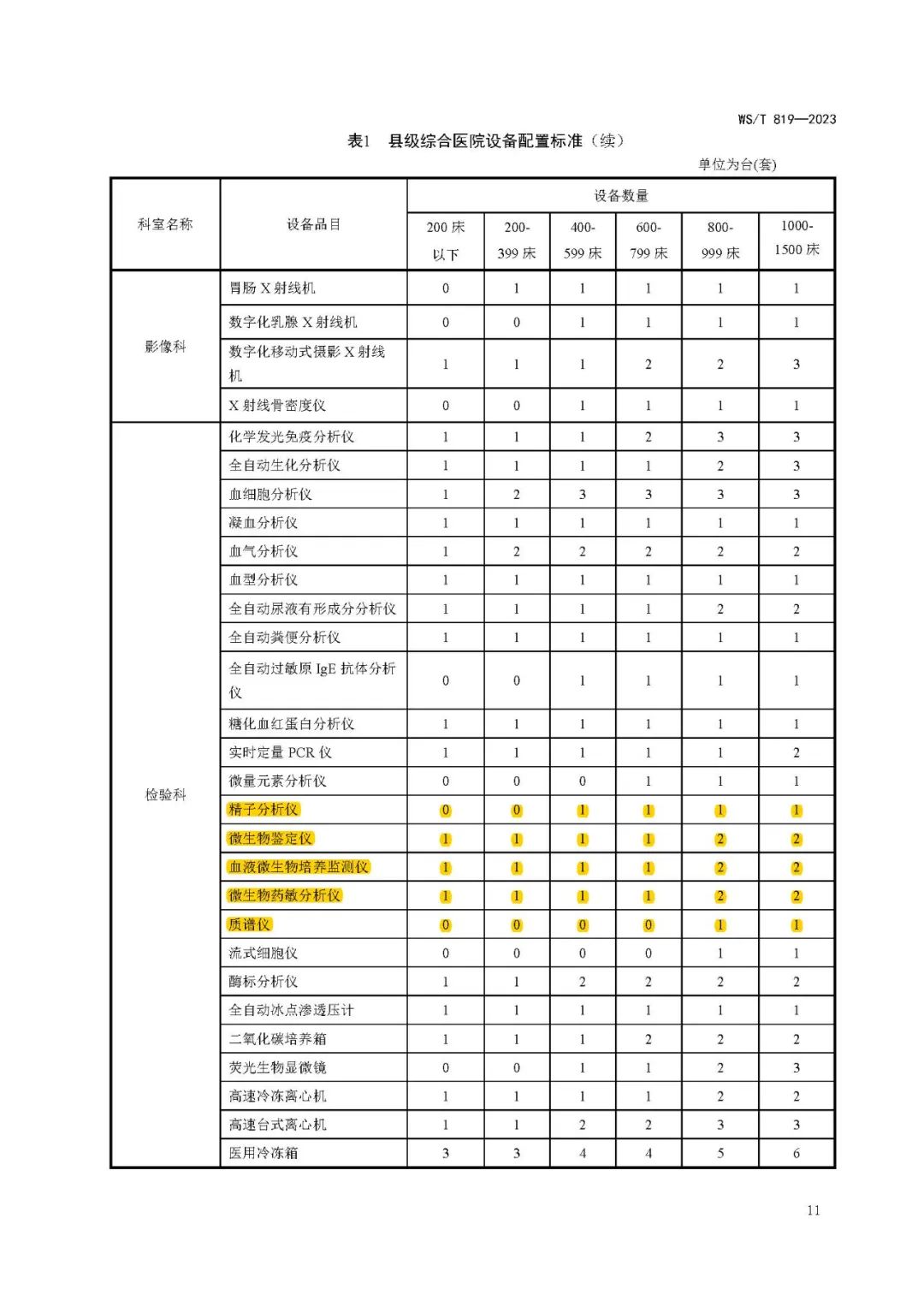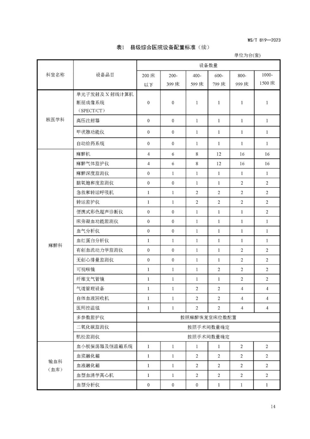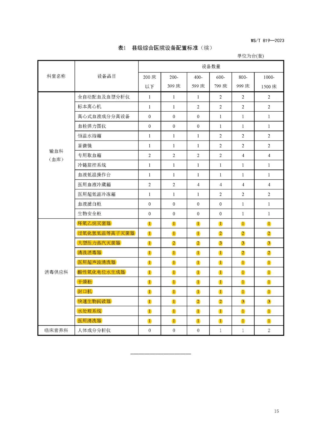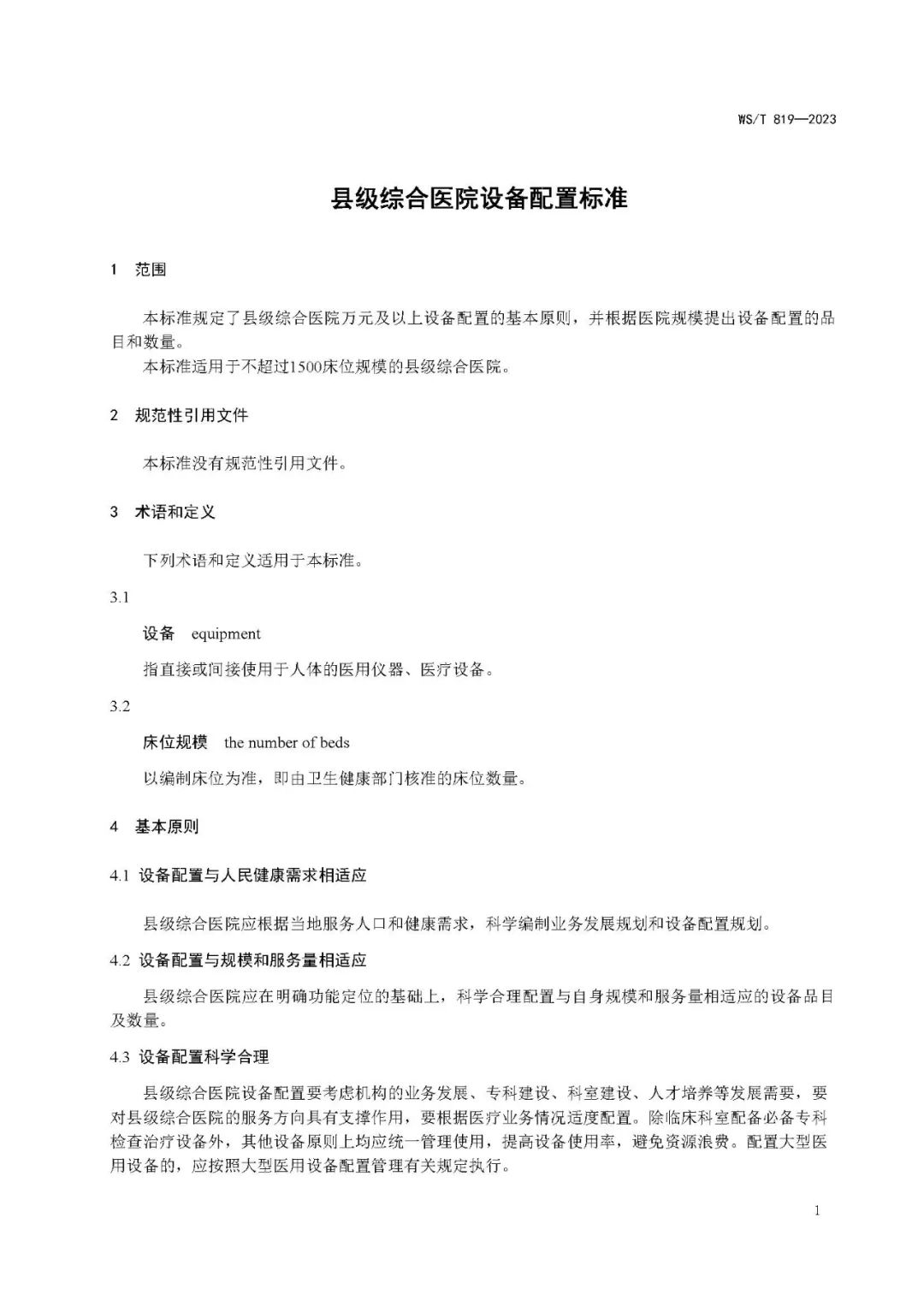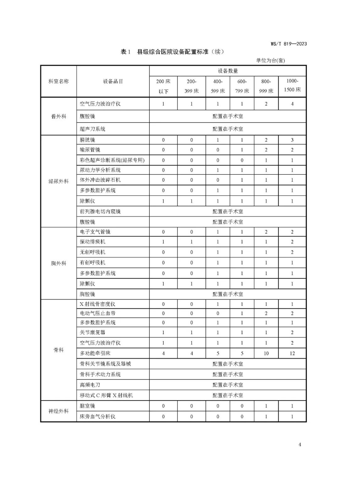 县级综合医院设备配置标准WS/T 819—2023