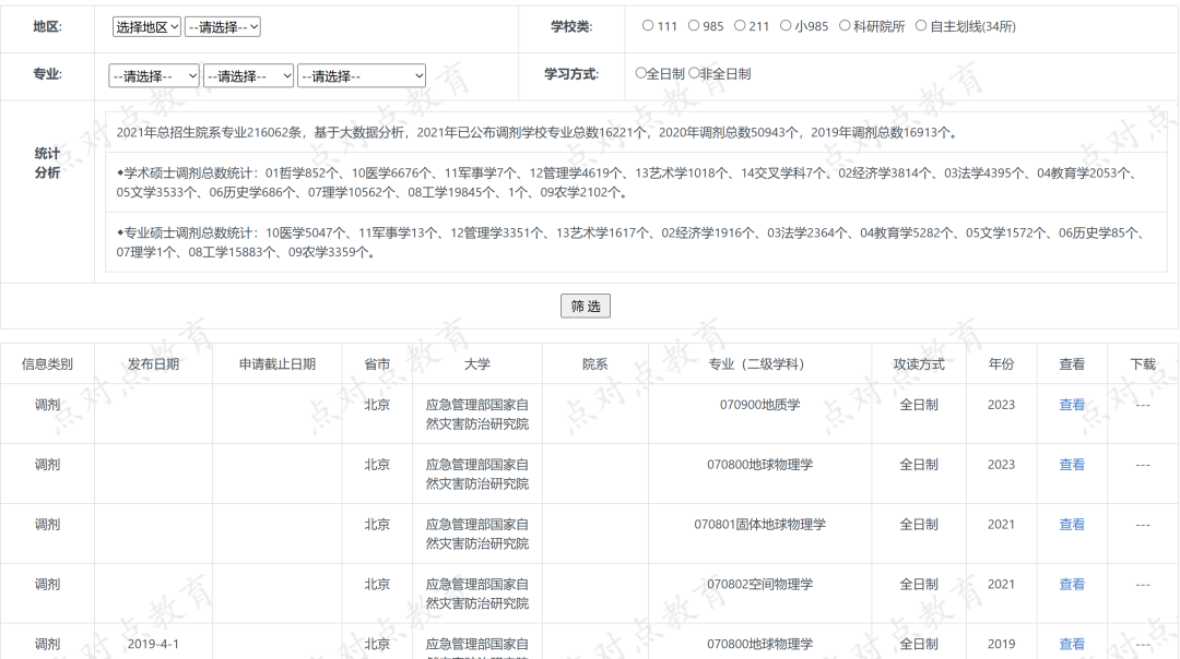 点对点私人定制系统,根据历年调剂数据,测算该专业的调剂概率大小,也可以作为考研报考的参考维度之一!
