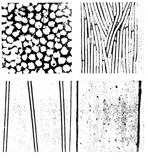 (3)腈纶:纵向为平滑柱状,有少许沟槽,截面为圆形或哑铃形,内部存在空穴结构。