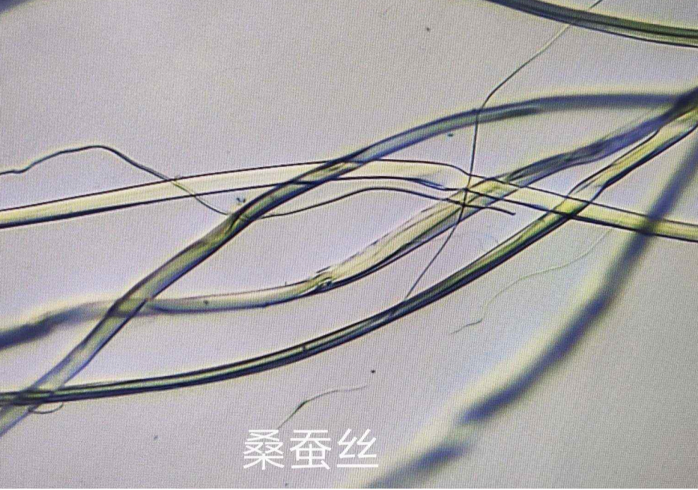 蚕丝:可分为桑蚕丝和柞蚕丝,由丝素和丝胶构成,它们都是蛋白质。丝素不溶于水,含量占蚕丝的70%-80%;丝胶含量占20%-30%,可溶于热水,碱液,不溶于冷水。此外还有少量色素,灰分,蜡质,碳水化合物等。每根蚕丝由两根丝素外覆丝胶组成,除去丝胶后的单根丝素截面呈不规则三角形;纵向平直光滑有光泽。