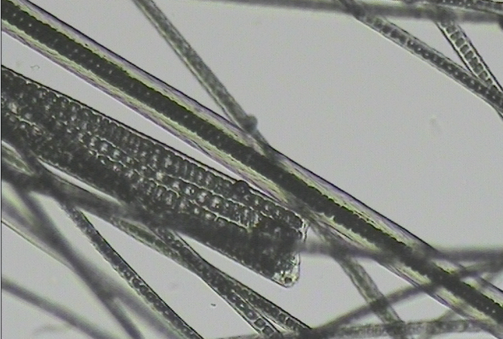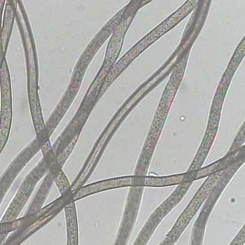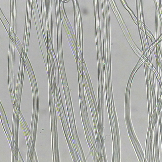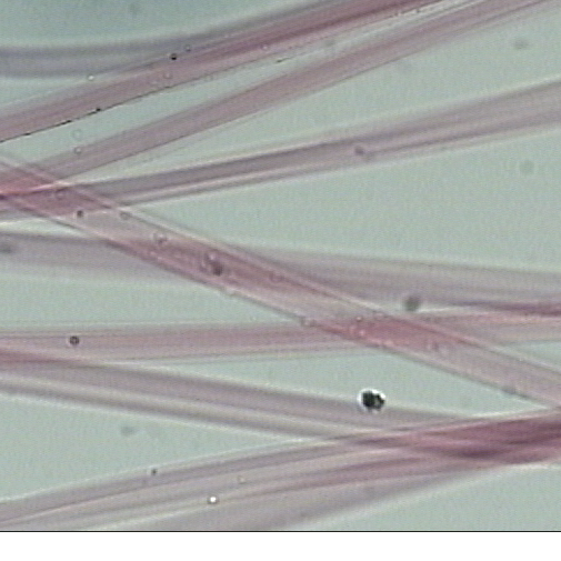 (2)锦纶:纵向平直光滑,有小黑点,截面为圆形,具有光泽的长丝。