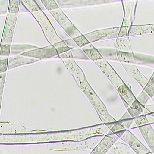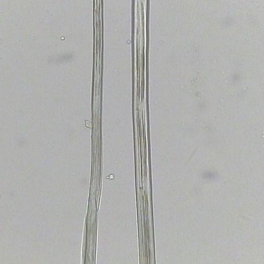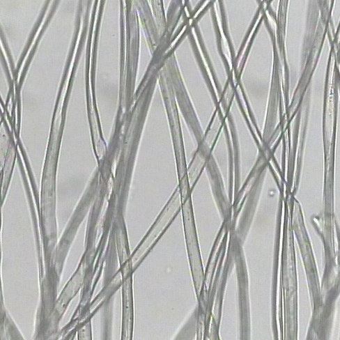 (2)莱赛尔纤维:纵向截面平滑有光泽,没有沟槽。