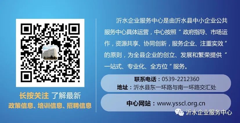 声明:“沂水企业服务中心”所推送的文章,仅供分享不做任何商业用途,版权归原作者所有。除非确实无法确认,我们都会注明作者和来源。部分文章及图片因转载众多,推送时未能与原作者取得联系。若涉及版权问题,烦请原作者致电0539-2212360或发送至邮箱:yszxqy@126.com,我们会立即删除,并表示歉意,谢谢。
