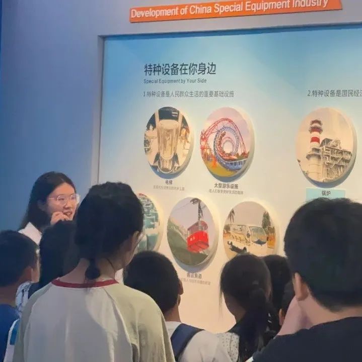 第三站来到了安全科普教育展厅孩子们聚精会神的听着讲解员讲解特种设备的发展史,特种设备的发展简史了解各种特种设备。