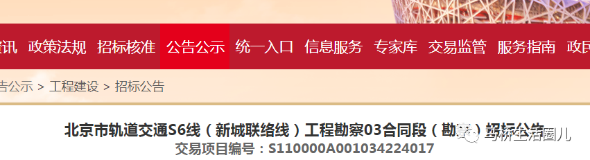 8月15日,北京市轨道交通建设管理有限公司发布了北京市轨道交通S6线(新城联络线)工程勘察各合同段(勘察)招标公告,其中03合同段包括嘉会湖-马驹桥站-开发区西区站的3站2区间。