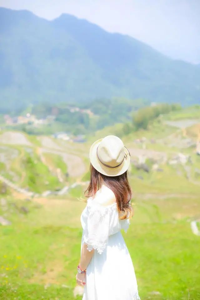 在美丽的山水田园中,不管是远处的高山,还是近处的田园都是拍照可选择的最佳美景,美女可以站在一处的高山上,然后双手放在身体的前边,眼睛眺望着远处的高山,就这样一个简单的动作,就可以拍出一张美丽的美女背影的全身照。