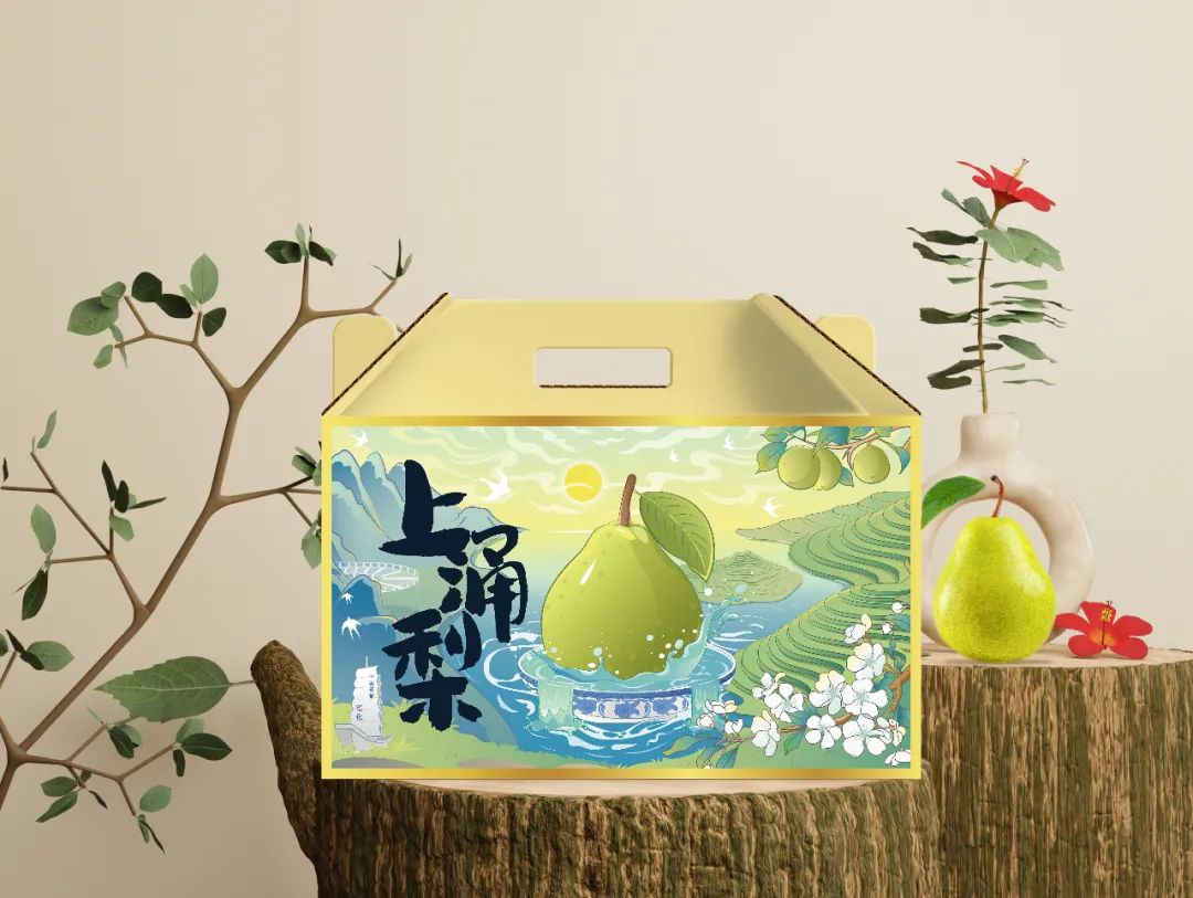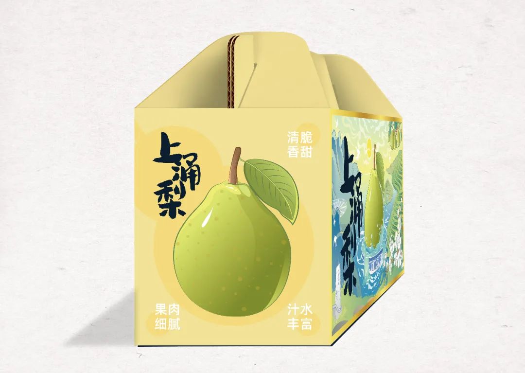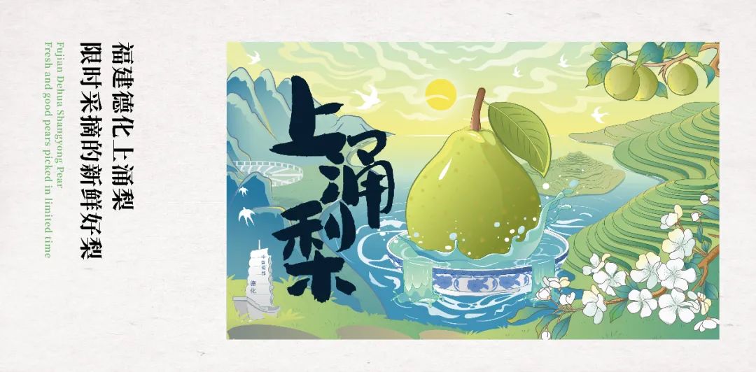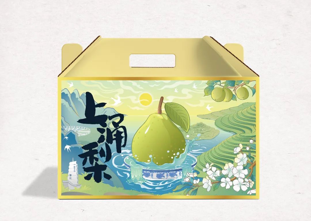 德化县旅游资源和生态资源丰富,有“中国瓷都”德美誉,当地大力发展和种植上涌梨。一款即将面向市场的产品,要怎么做到吸引消费者的目光?打动消费者的诚意?在设计过程中,包装包装决定以简约大气为基调,用手绘插画的方式描绘德化县环境优美,景色宜人以及上涌梨的生态感,主视觉上最大化的呈现产品内容与卖点。