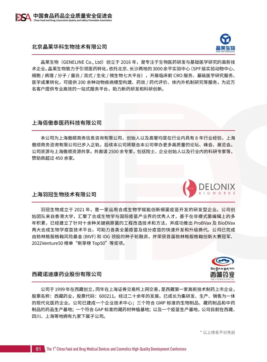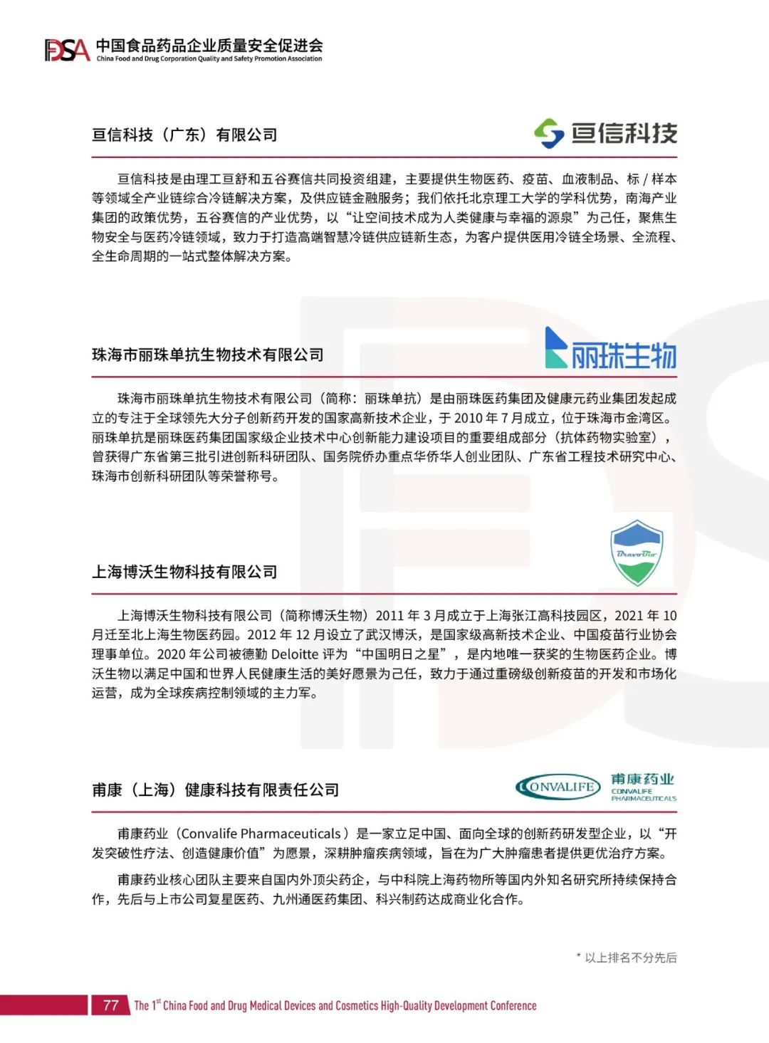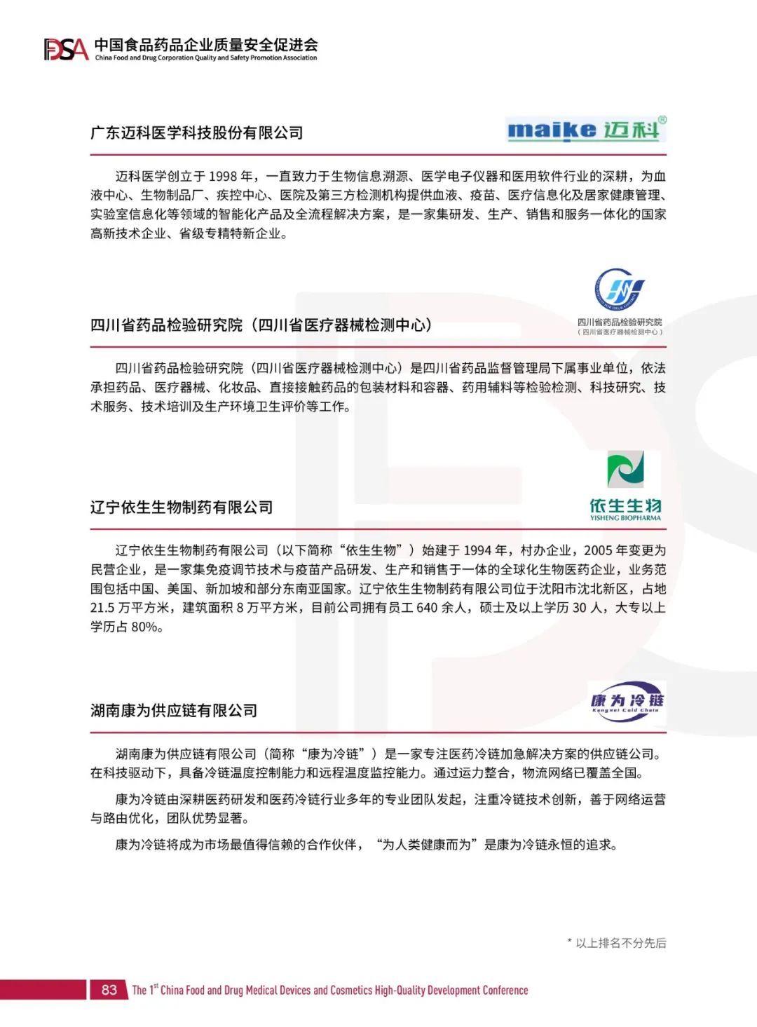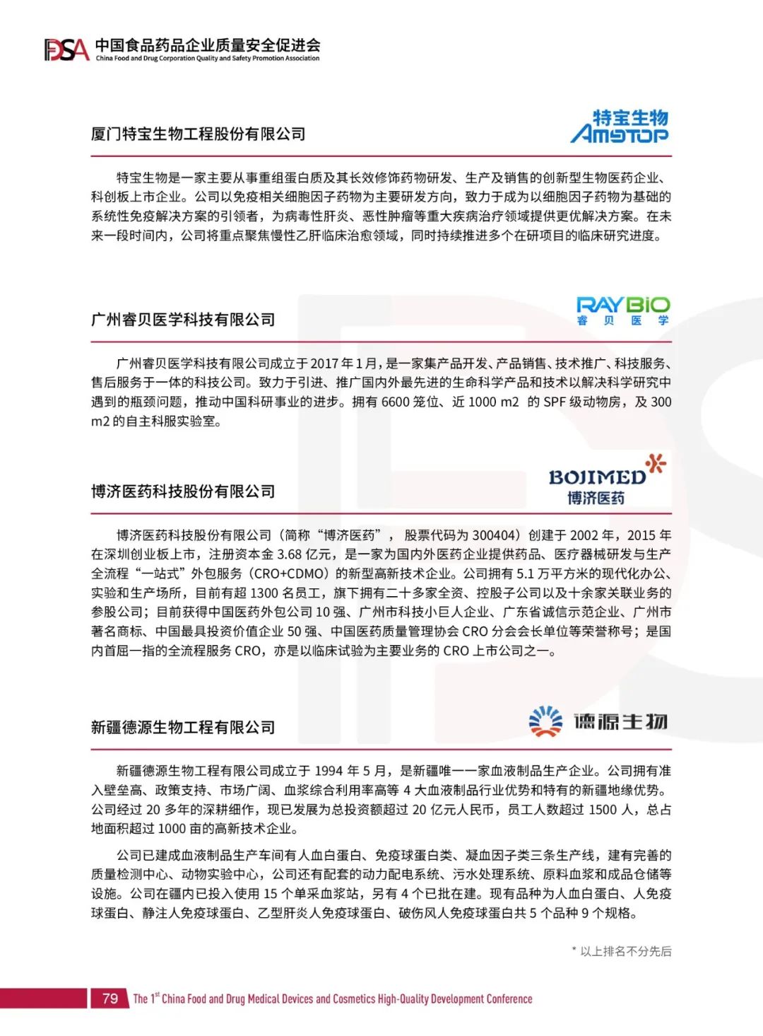 首届中国食品药品医疗器械化妆品高质量发展大会部分参展、参会企业介绍