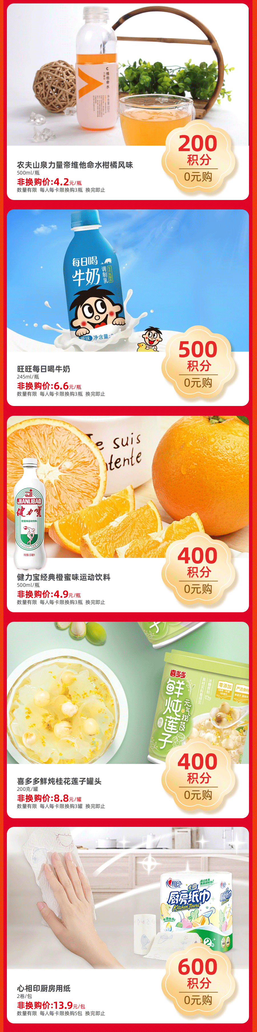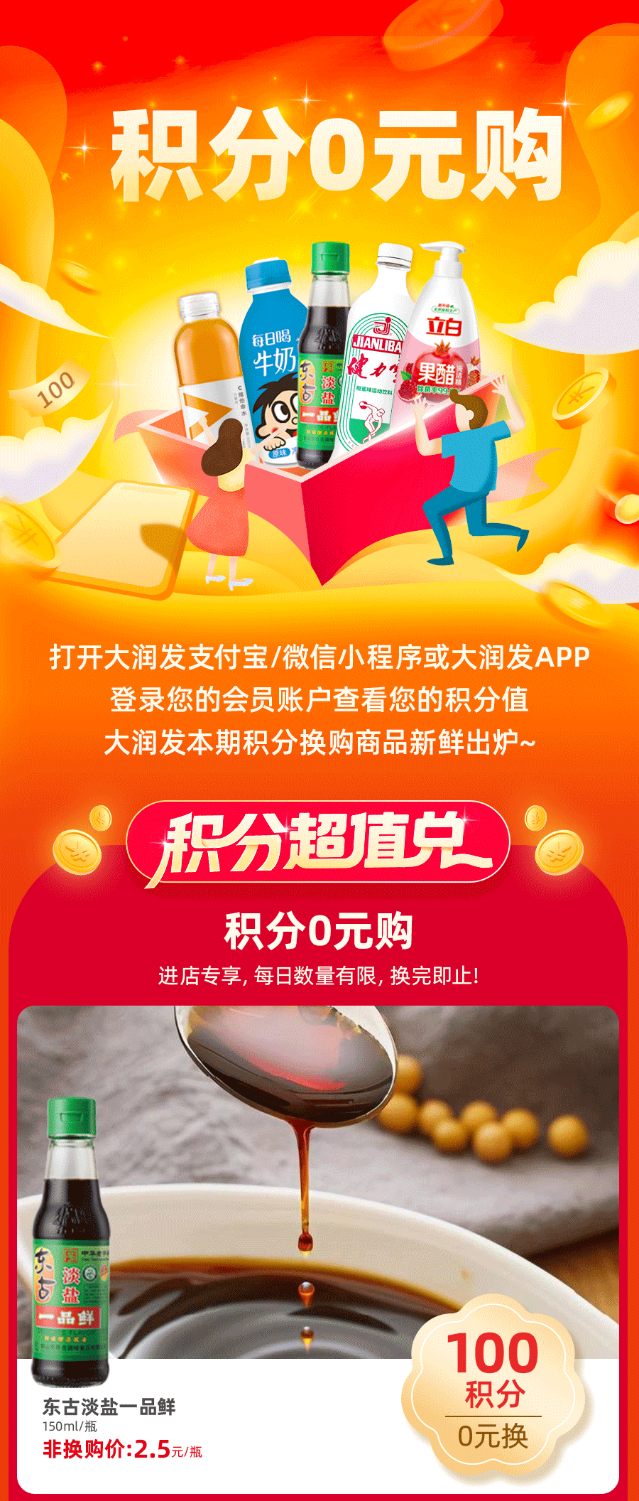 积分0元购丨酱油、意面、饮料......0元带回家!