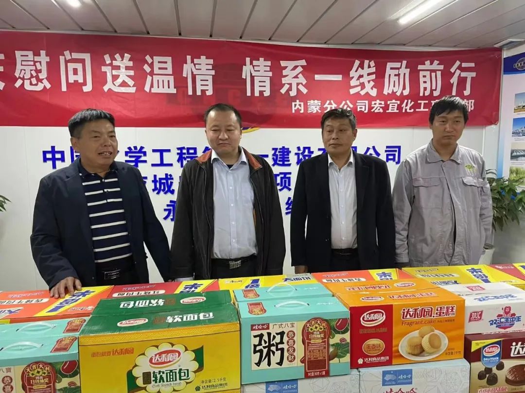 10月8日,公司总会计师何健,公司总经理助理、内蒙分公司总经理王长伟,分公司副总经理张文亮到内蒙分公司应城宏宜化工项目检查指导工作,慰问国庆节期间仍坚守岗位的一线员工。