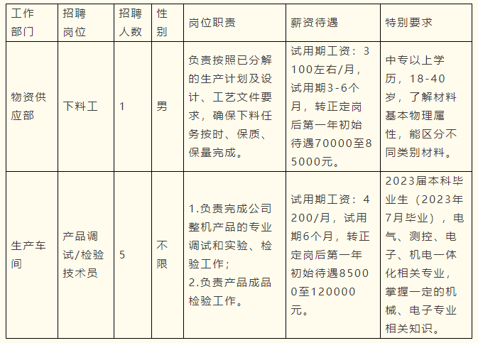 3. 具有较强的团队协作,任务服从意识,具有较强的学习、沟通、执行能力;4. 持有中、高级工证,具有一定的机电产品从业经历人员优先。请将简历命名为“学历+专业+姓名+百姓就业”并以附件形式发送公司招聘邮箱lqhr@nercsspm.cn,公司会在三个工作日内审核完毕,符合招聘条件的通知现场面试,不接受现场投递及电话面试!简历投递截至2023年8月20日。>>>详见内容请点击文末“阅读原文”