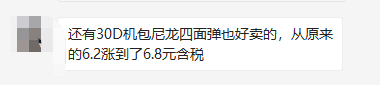 30D机包尼龙四面弹6.2涨到了6.8!