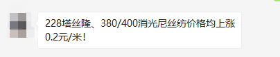 228塔丝隆、380/400消光尼丝纺价格上涨0.2元/米!