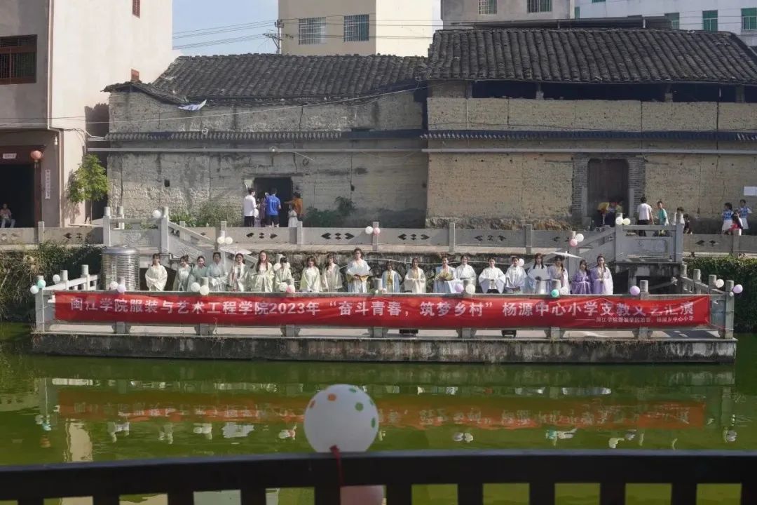 7月12日,闽江学院服装学院“奋斗青春,筑梦乡村”暑期社会实践支教团队联合政和县杨源乡党委、政府在当地举行了别具一格的“古韵福地秀华服,乡村振兴谱新篇”汉服巡游暨2023年暑期社会实践成果展。闽江学院服装学院社会实践队师生、杨源中心小学部分师生与家长、当地民众、游客等近千人观看了展演。