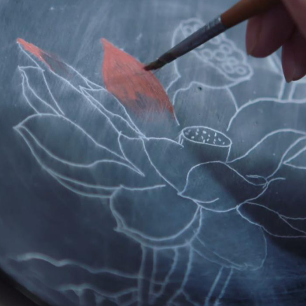 中国的四大漆器都是用的纯原料的植物漆,也就是从漆树上割下来的天然漆。但每个地方的技法是不一样的,像我们成都漆器的话主要做三雕一刻——雕银丝光、雕花填彩、雕漆隐花、拉刀针刻,这是成都漆器的四大绝技,特别是我们的雕银丝光,这个工艺源自汉代,而唐代就是其鼎盛的一个时期。
