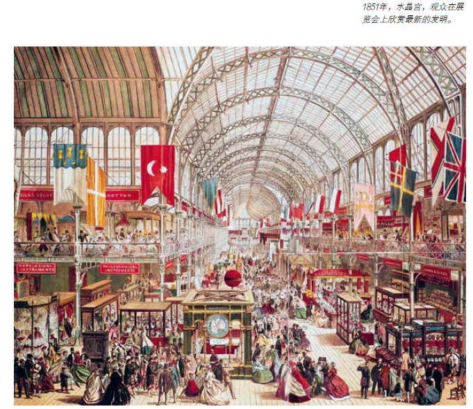 1851年,在海德公园标志性的水晶宫内举行的第一届世界博览会,展示了工业化是通向美好未来的关键因素。600万名观众参观了来自世界各地的新技术、新发明和消费品,流连于异彩纷呈的展品之间。本次展览会从品位、文化和时尚各方面都对观众产生了积极的影响。
