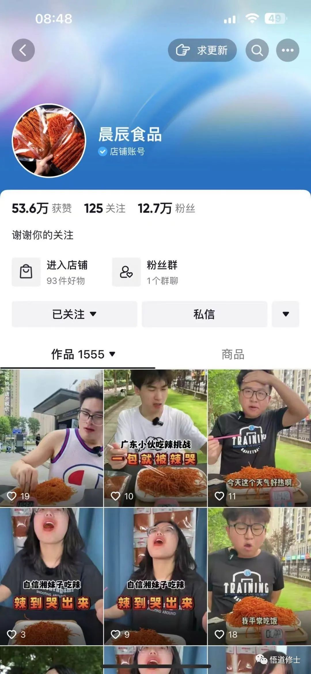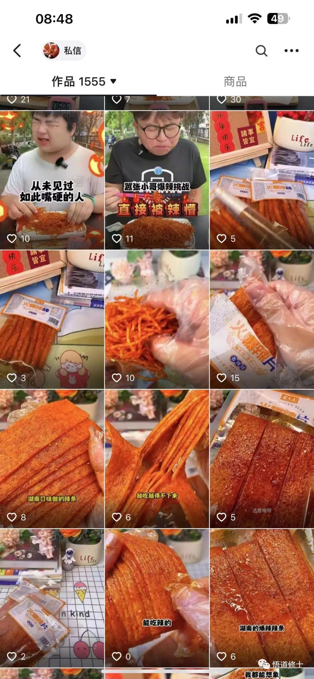 这个账号选择了零食赛道中的一个品类——辣条。