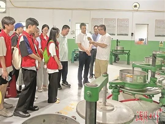 在饶平县天竺生态农业专业合作社,实践团成员在茶厂技术专家的带领解说下走进茶叶生产车间,近距离了解茶叶的制作过程,领略茶科技的魅力。通过参观,实践团深深感受到科技的力量,以机械化赋能茶产业,能够有效提高茶叶生产效率,助推茶叶生产转型升级。