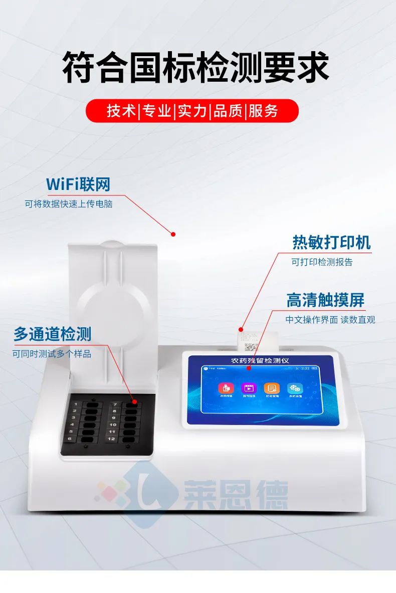 农药残留快速检测仪用于检测水果、蔬菜等作物和土壤环境中残留的农药残留含量。农药残留快速检测仪具有操作简单、检测时间短、检测成本低等特点。该方法可用于现场检测,快速获得检测结果,满足农产品贸易和农产品批量市场、餐饮企业、果蔬生产基地、农副产品配送中心、食堂、超市等场所的快速检测需求,确保舌尖安全。