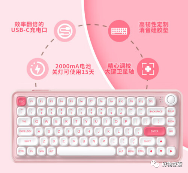 达尔优小方糖键盘搭载了锂电池,关灯状态下可使用15天,不用担心在图书馆使用时电量不足。键盘还配备了粉色的猫咪抓垫旋钮,颜值真是无敌。不仅适合自己使用,还可以作为礼物送给朋友,非常可爱。每次使用它,都会感受到清脆的声音,带来强烈的机械感和打字的满足感。