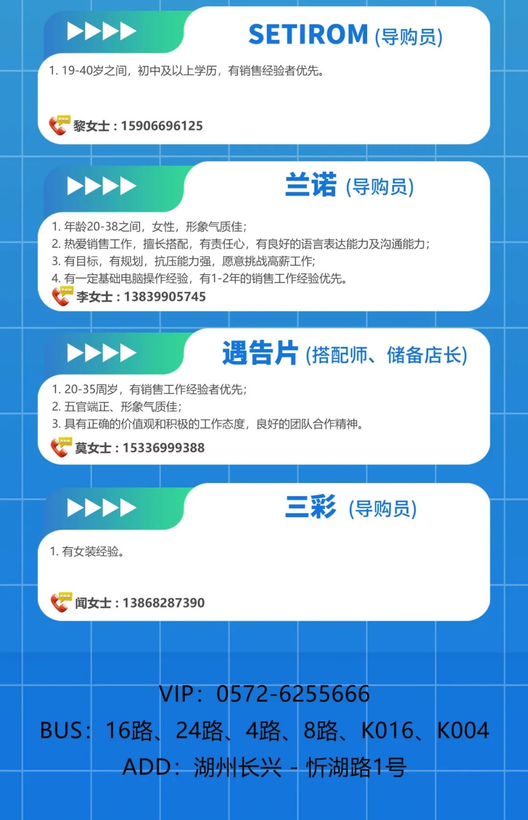 湖州长兴万达广场各品牌招聘启事