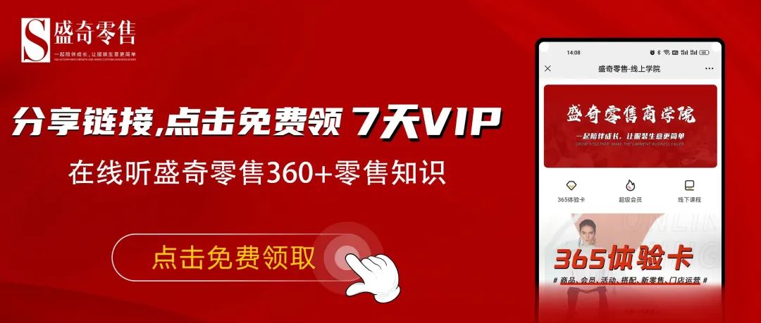 了解更多盛奇零售近期线下课程: 《挖掘服饰盈利增长点-盛奇零售大会》12季8月28-30日(杭州站) 于有为老师《稳准狠组货/订货技巧》第39期 8月21-22日(杭州站) 王凯老师《服饰零售经营管理总裁班》第9期 9月5-7日(杭州站)