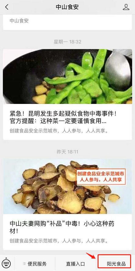 关注中山食安微信