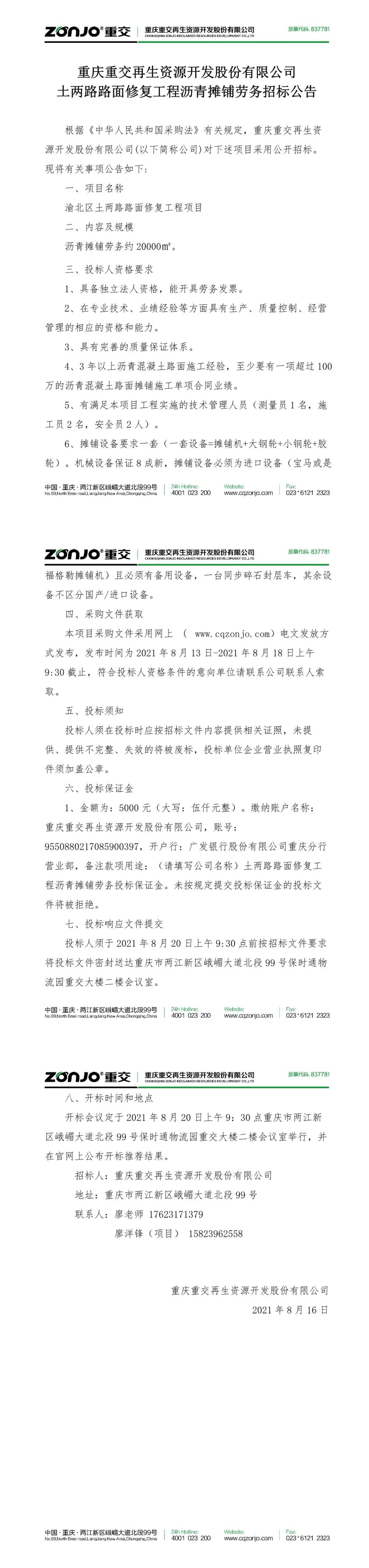重庆重交再生资源开发股份有限公司是一家从事城市基础设施(含新基建)投融建营一体化的非上市公众公司(证券代码:837781),系西藏天路股份有限公司(股票代码:600326)控股公司。公司具有公路工程施工总承包一级、市政公用工程施工总承包一级资质,业务涵盖新型建筑材料、道路/房建工程、金融、贸易等,业务区域遍及重庆、四川、贵州、西藏、甘肃等地。