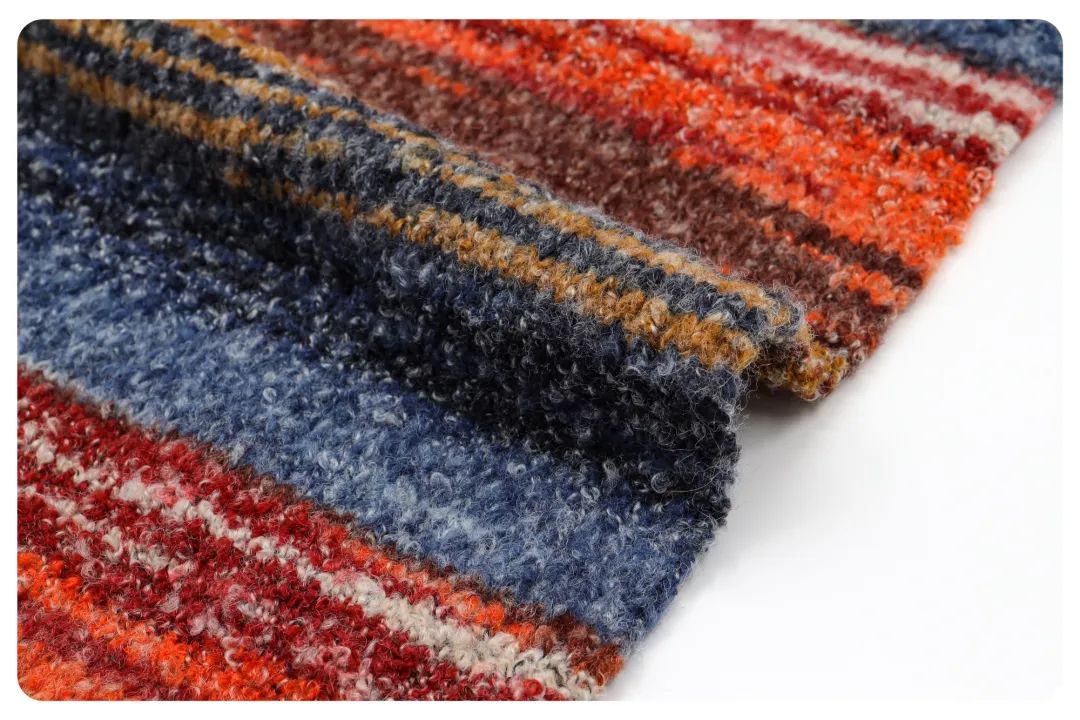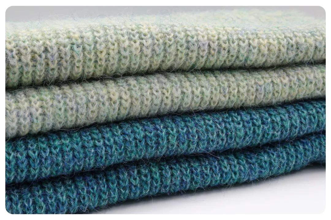 丰富的纱线总能给人们带来不同的惊喜,清新的色彩给生活充满了活力的气息,织物表面毛羽长,能给人一种柔软舒适、温暖的感觉。