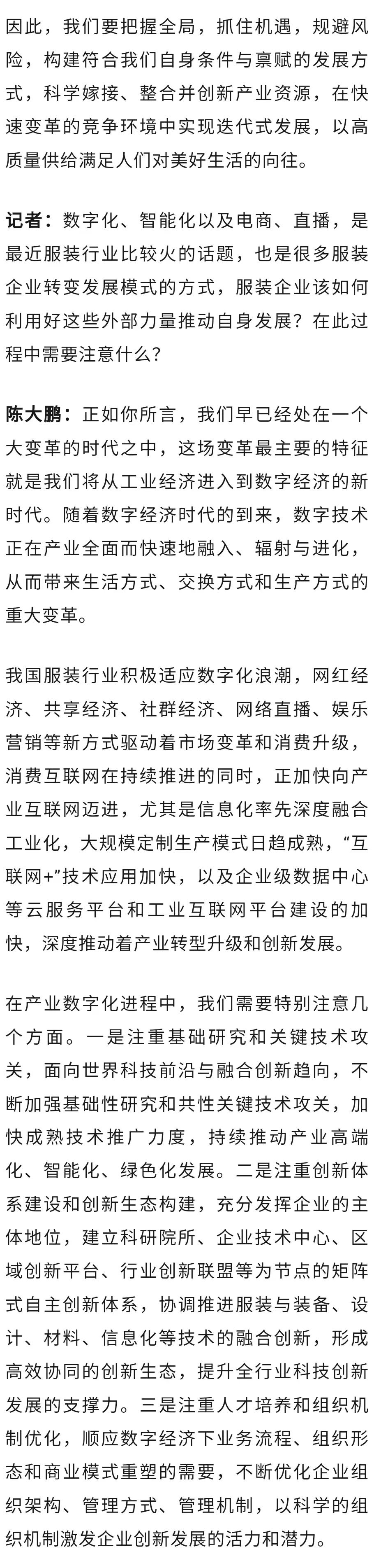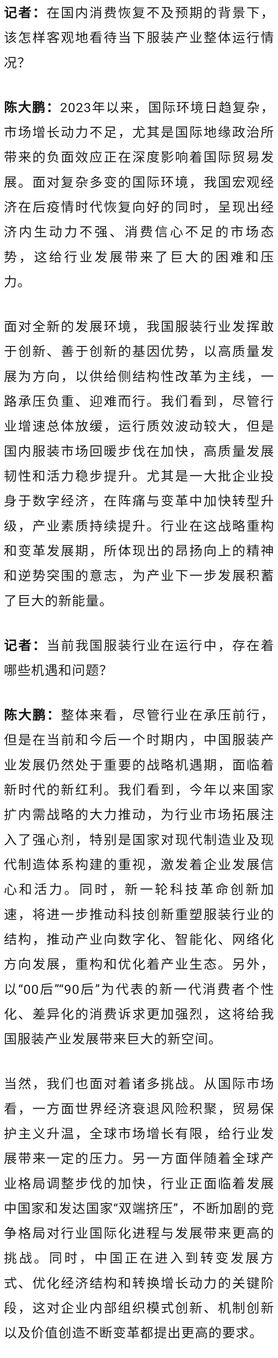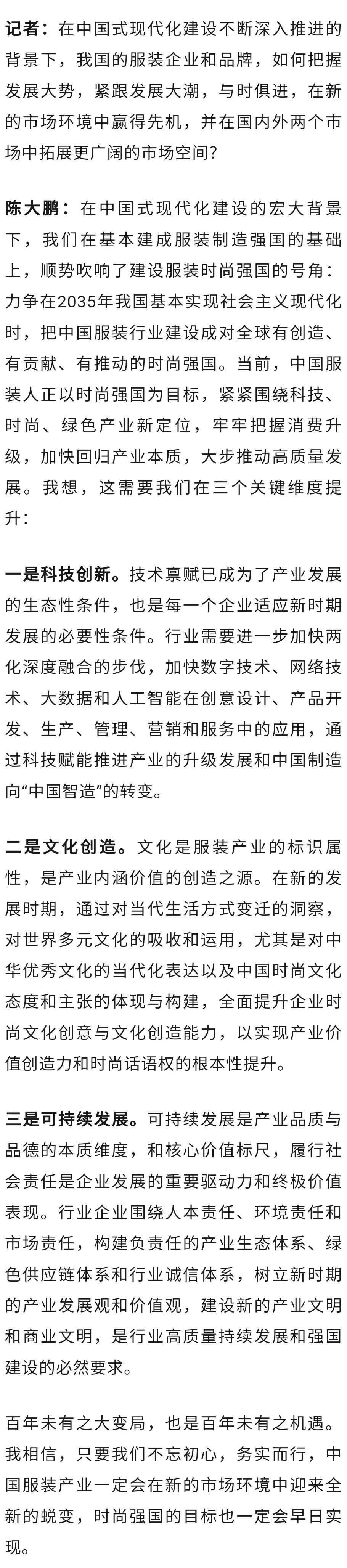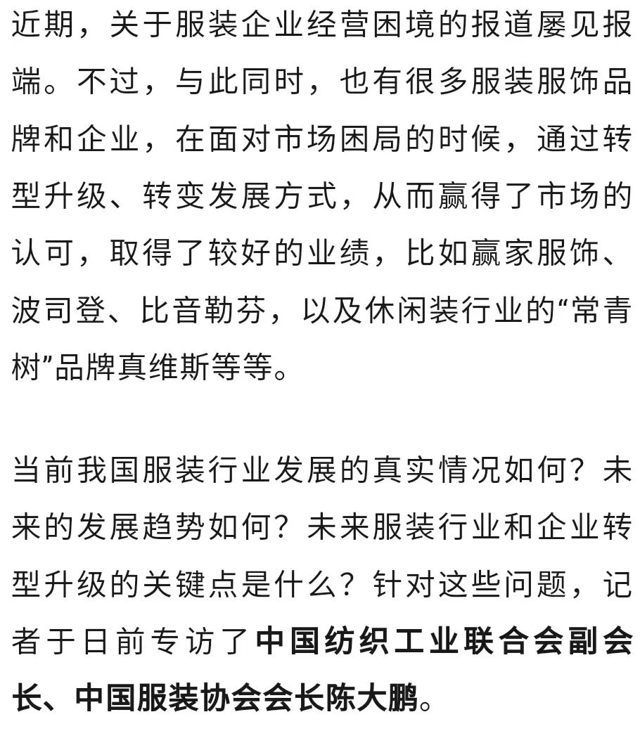 专访 | 中国纺联副会长、中国服装协会会长陈大鹏:服装行业在压力中创新前行