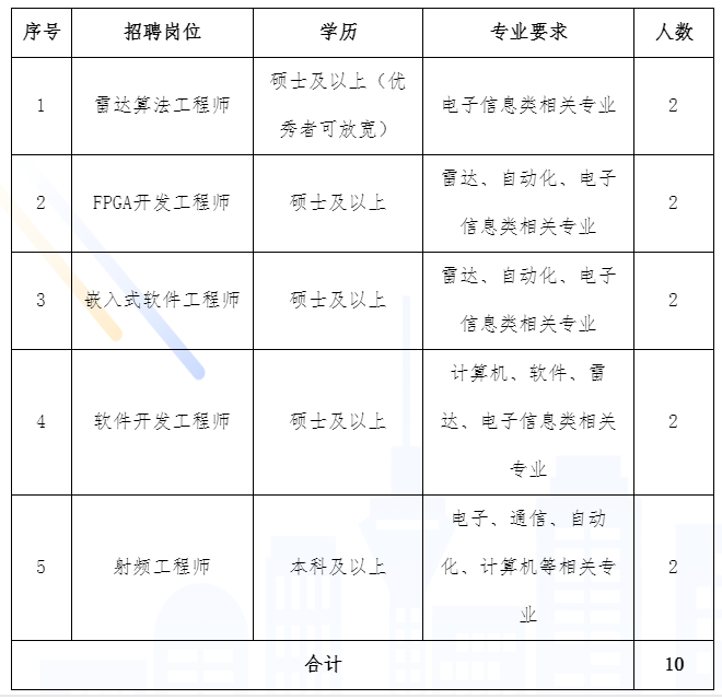 成都汇蓉国科微系统技术有限公司2017年4月注册于天府新区,注册资本 7000 万元,是国家高新技术企业、全国科技型中小企业、四川省软件企业、四川省“专精特新”企业、四川省瞪羚企业、成都市企业技术中心。公司自成立以来,形成了一支以四川省高层次创新团队为核心,以四川省、成都市、天府新区高层次人才为骨干的创新创业队伍。公司致力于频谱认知、组网探测、数据应用等领域,专注于“专精特新”微系统技术研究及产品开发,为用户提供新一代产品和系统解决方案。已形成以低空探测跟踪雷达、新一代成像雷达为代表的频谱感知与探测系列产品,并已通过多个场合应用验证,研制的产品参加国庆70周年阅兵保障任务。公司始终坚持自主创新研发,目前已授权专利59项,已申请专利100余项。薪酬:提供具有较强竞争力的薪酬待遇,优秀员工更有机会参加公司长期激励计划,共同分享公司快速发展带来的丰厚回报。保障性福利:社会保险、住房公积金、年度健康体检、新员工入职体检。生活福利:不定期聚会、聚餐、月度生日会、旅游、带薪假期、各大节日礼包、各项弹性福利等。技术路线:初级工程师-中级工程师-高级工程师-高级专家-技术首席-战略科学家基本需求:公司发展稳中求进,长短期规划按步实施,为员工提供稳定向上的职业发展环境;宽带薪酬体系,可覆盖各层次需求;每年调薪一次,最高涨幅可超100%;价值肯定:专项奖金,通过项目贡献评定奖金额度,拒绝平均主义,肯定个人在项目中的价值;能力认证,通过认证可提升职级、岗级,并获得更高级别的薪酬待遇。保障每个员工的能力价值得到客观公正的评价与肯定。能力成长:内部培训,新员工培训、导师一对一辅导、技术交流、外聘专家技术分享等;外部培训,定期国内学术交流、管理培训、项目实践等。除此之外,公司为每个员工提供学习地图,鼓励技术、管理全方面发展,并为之匹配相对应的晋职晋升通道。潜能挖掘:“重点人才计划”创新强基工程设立项目奖金,支持鼓励创新研究,突破技术壁垒,发挥潜能实现个人、团队价值提升。(一)博士可直接享受公司已获批的天府峨眉计划-高层次创新创业团队项目资助;(二)汇蓉公司“重点人才计划”创新强基工程,支持团队、个人开展创新研究,并设立创新成果奖;(三)支持优秀个人申报省、市、区各项人才项目,资助10万-300万不等。项目包括,四川省“天府峨眉计划”、四川省“天府青城计划”、成都市“RP计划”、“天府英才计划”、蓉贝人才、成都/天府工匠等。2024/1/1至 2024/12/31 期间毕业于国内高校的应届毕业生。